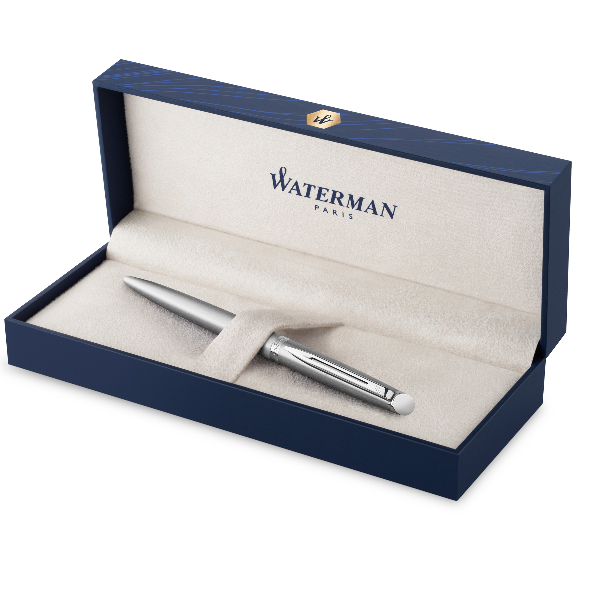 Waterman Hemisphere Entry Point Stainless Steel matte ballpoint pen in a gift box.