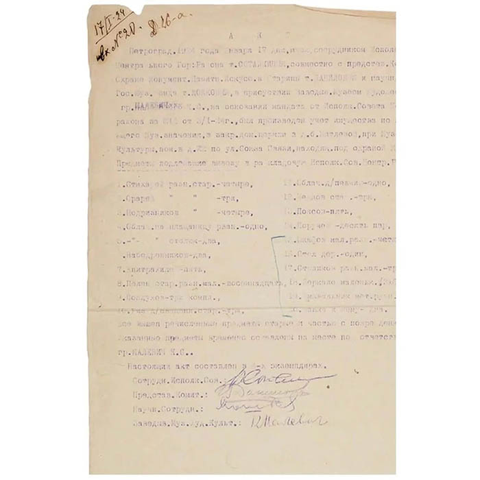 This document is an Act of the Committee for the Preservation of Monumental Monuments of Art and Antiquity and the Museum of Art Culture on Property accounting. Petrograd, January 17, 1924