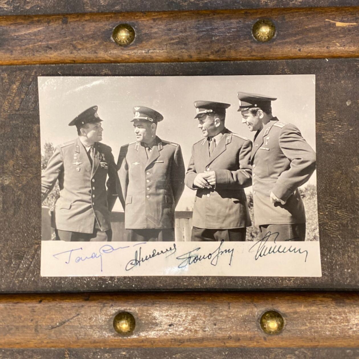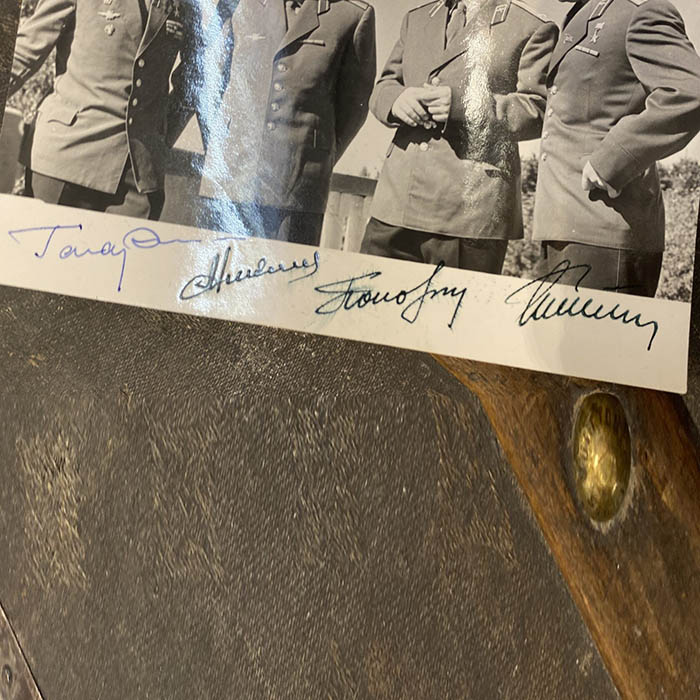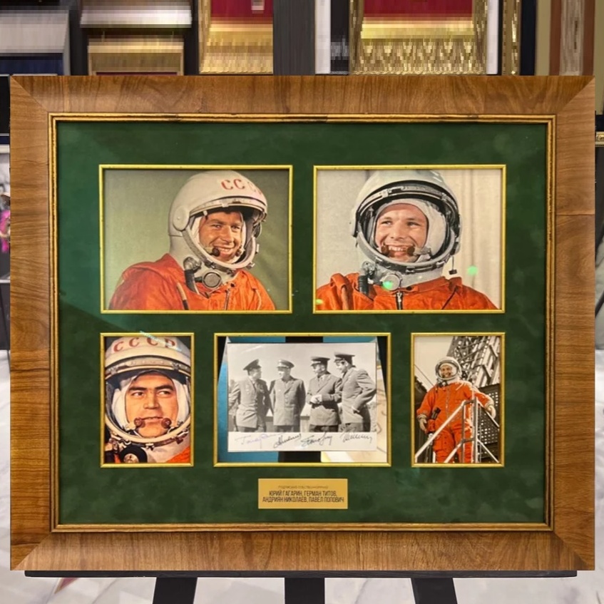 Photos with 4 autographs of cosmonauts Yuri Gagarin, Andriyan Nikolaev, Pavel Popovich, German Titov