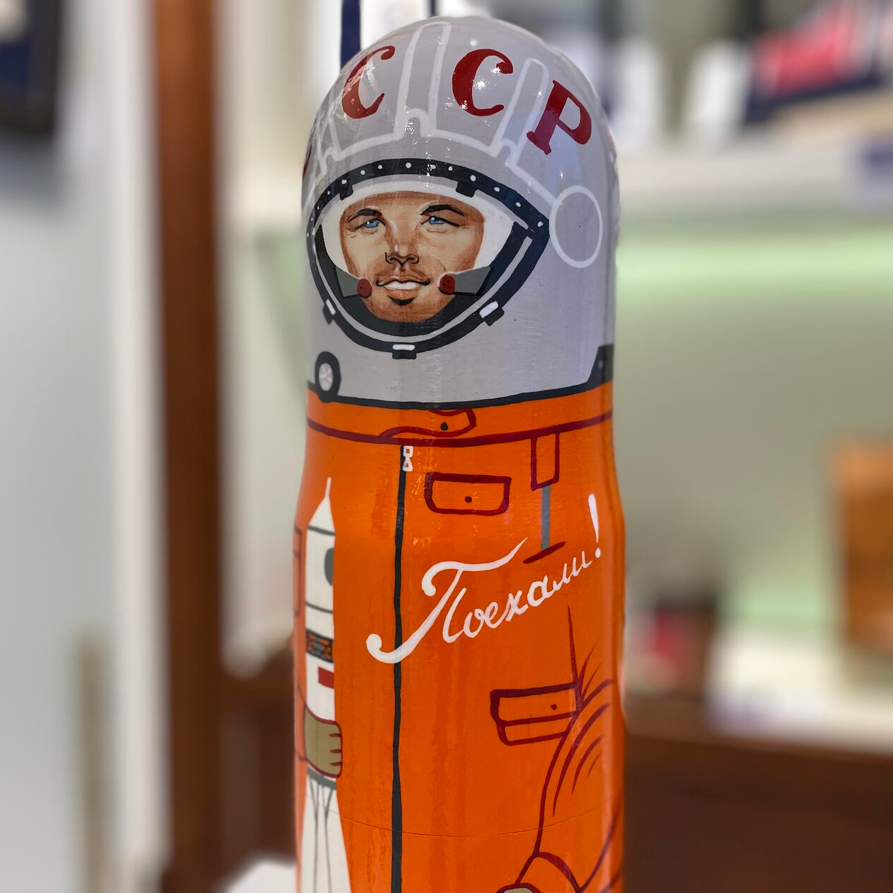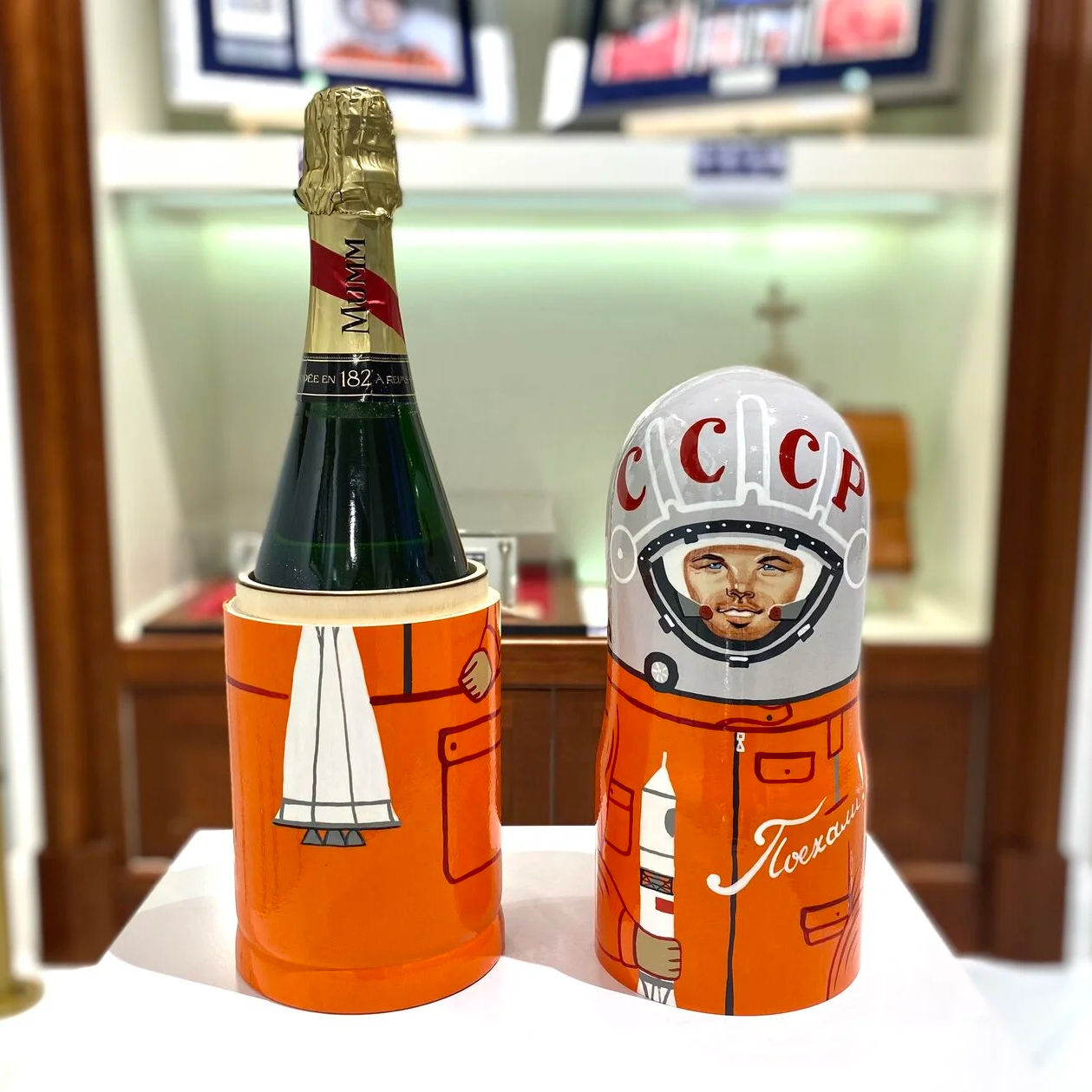 Champagne bottle, stylized as a portrait of Yuri Gagarin