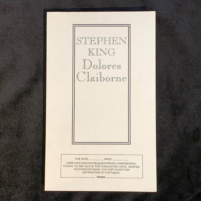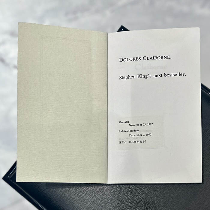 Stephen King's book "Dolores Claiborne" special edition for critics in 1992.