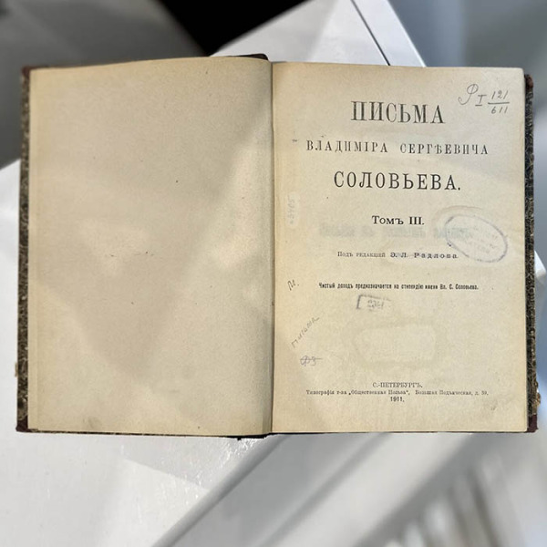 The book "Letters of V.S. Solovyov". Volume 3. Edited by E.L. Radlov, St. Petersburg, Printing house of the association "Public benefit", 1911