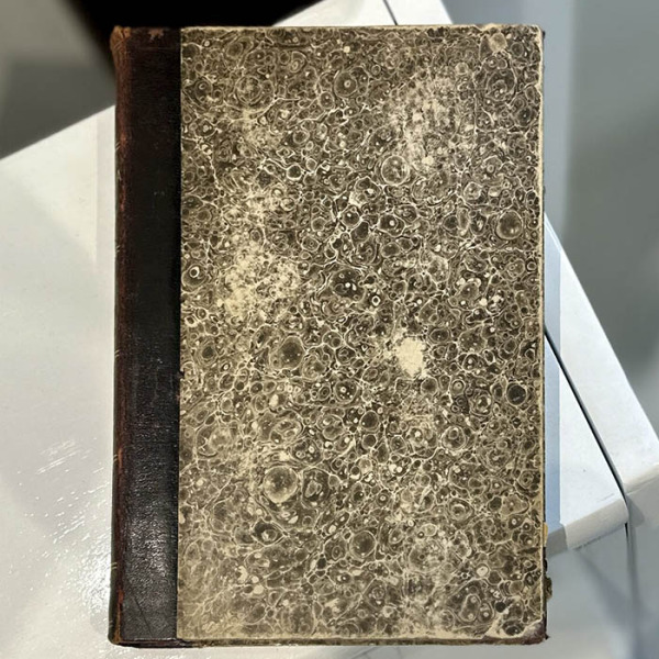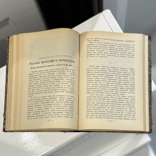 A book from the personal library of Nikolai Lossky, a Russian philosopher, in a custom binding, with gold lettering on the spine.
