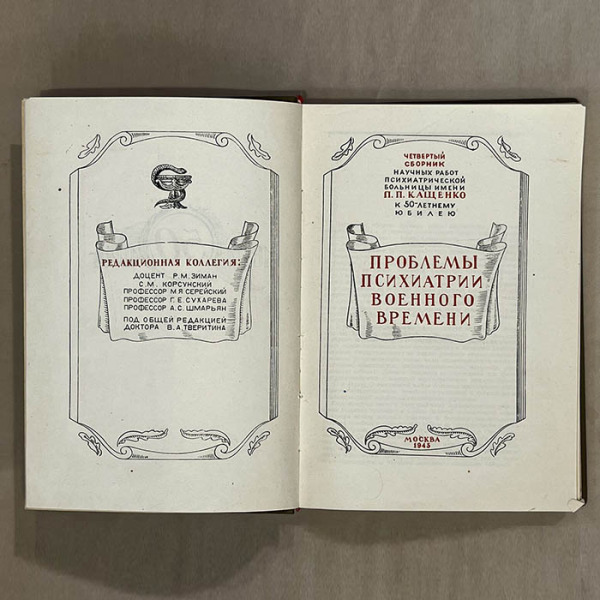 The book "Problems of wartime psychiatry". Printing house of Izvestia of Soviets of Workers' Deputies of the USSR, Moscow, 1945.