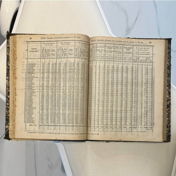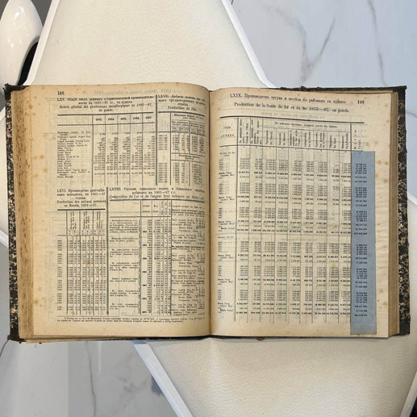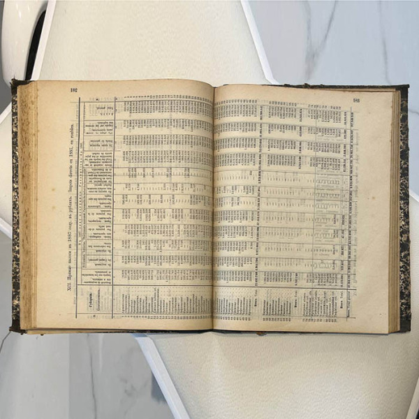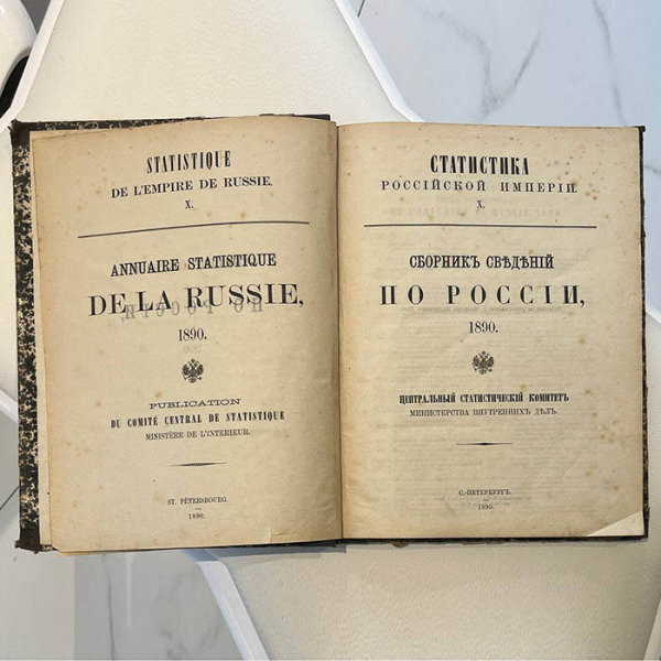 The Stargift collection contains an antique edition of the statistical collection of information on Russia of the Central Statistical Committee of the Interior of the Russian Empire for 1890, duplicated in two languages — Russian and French.