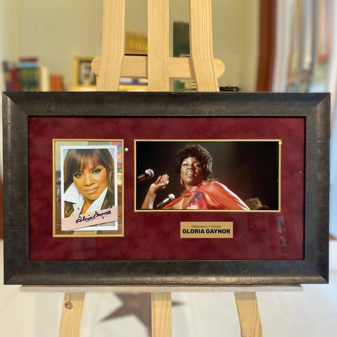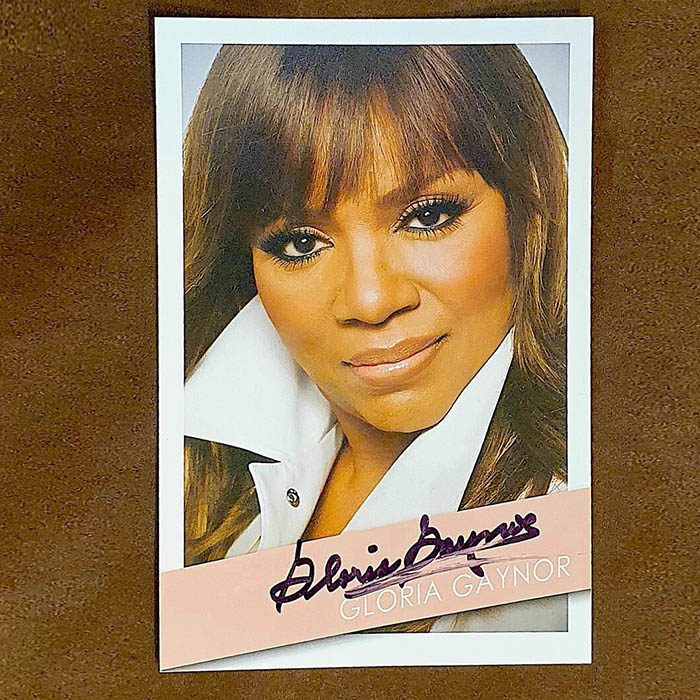 An autographed photo of singer Gloria Gaynor