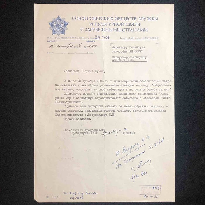 An autographed document of the Soviet party and statesman Gennady Yanaev