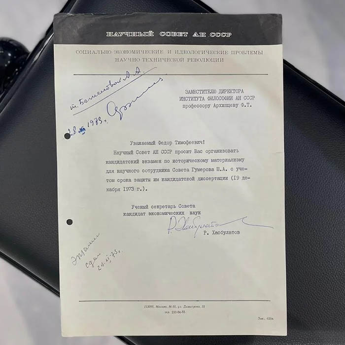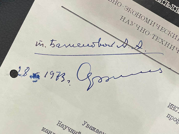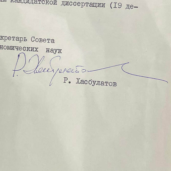 An autographed document by Russian politician Ruslan Khasbulatov