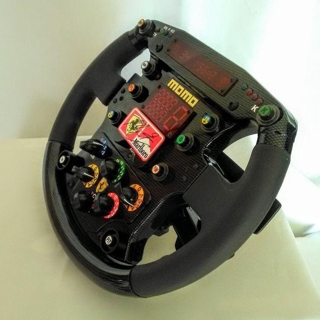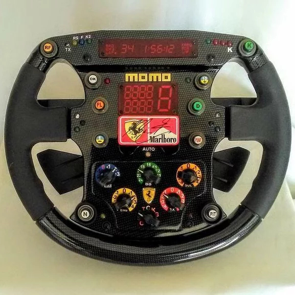 Replica steering wheel of a 1999 Ferrari F399 autographed by racer Michael Schumacher