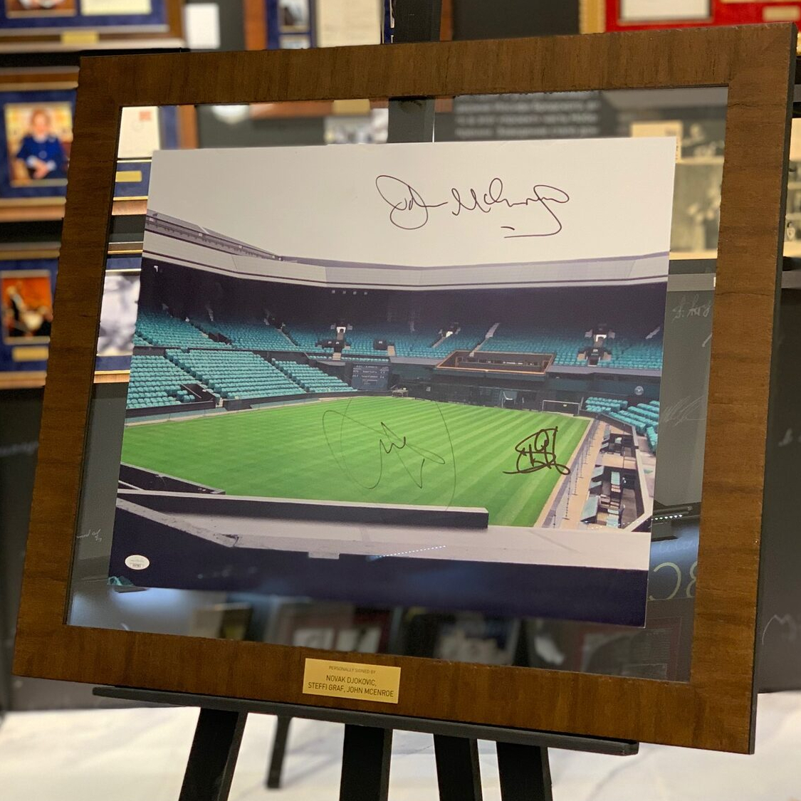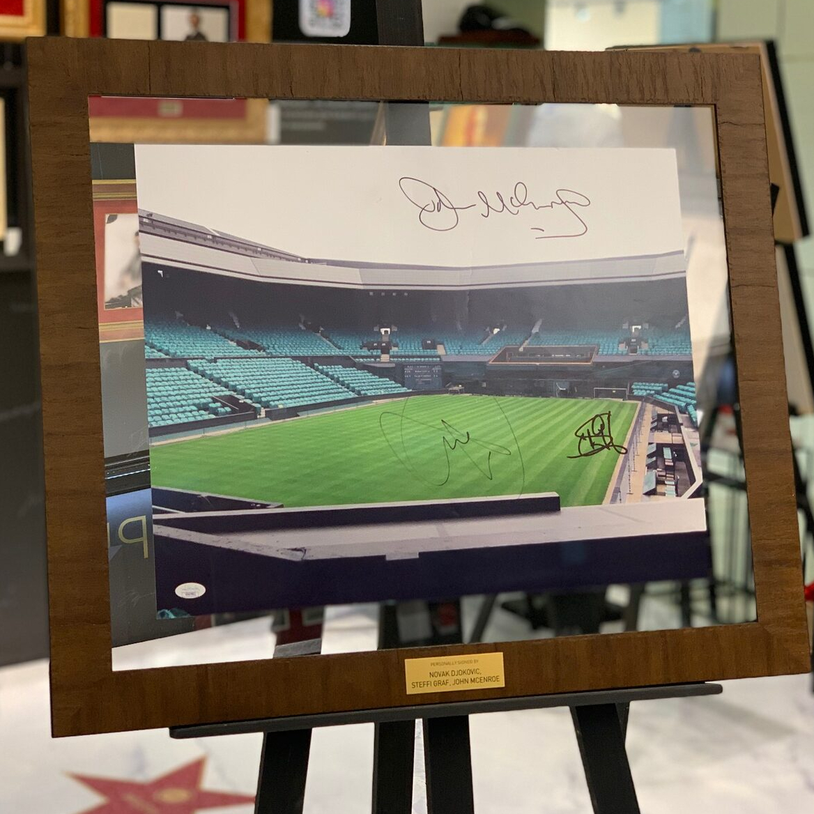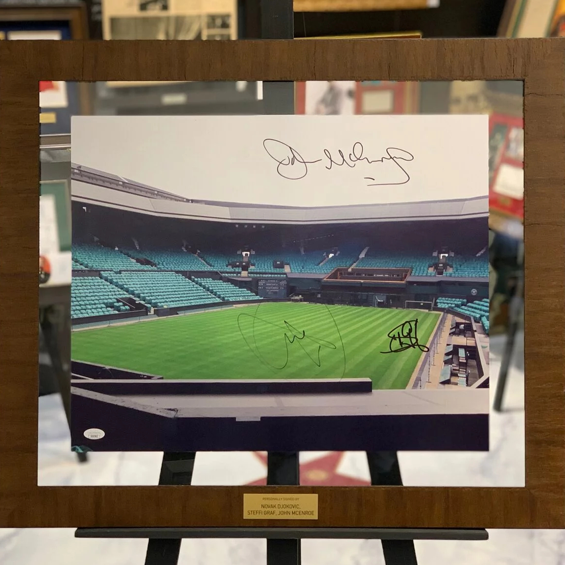 Photos with 3 autographs of some of the world's best tennis players Novak Djokovic, Steffi Graf and John McEnroe