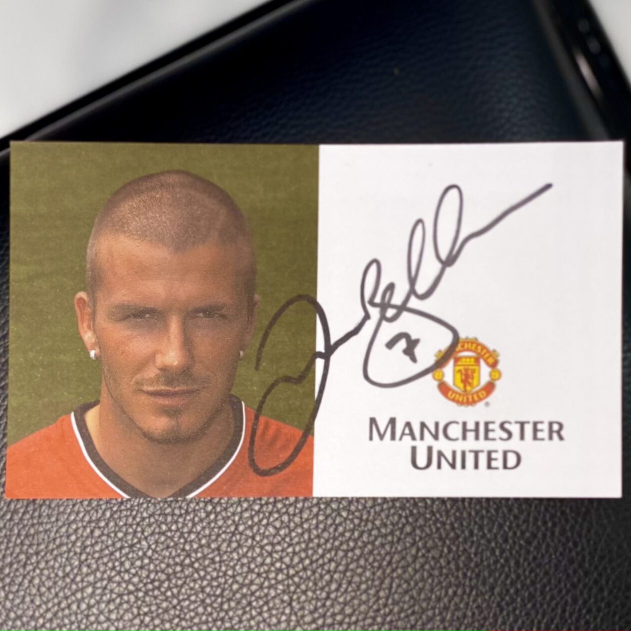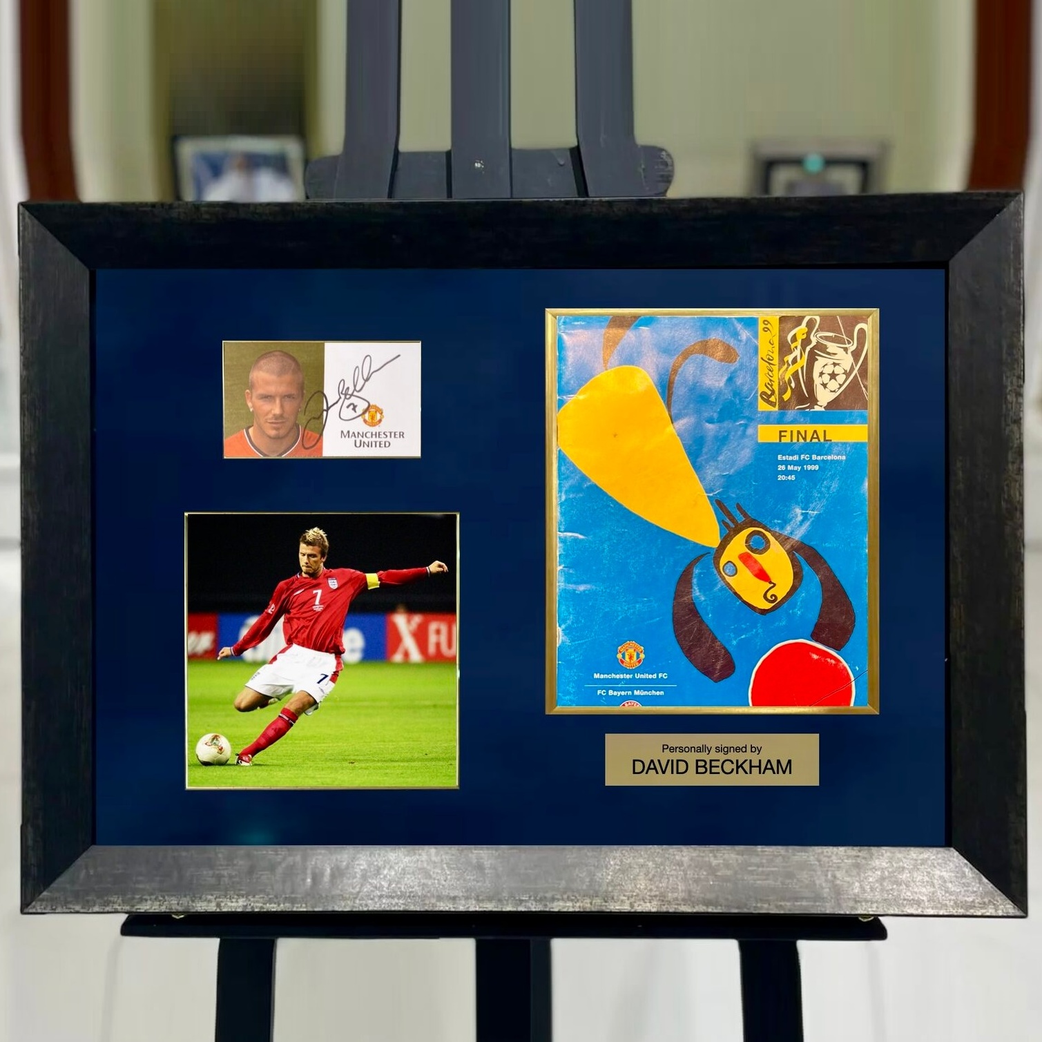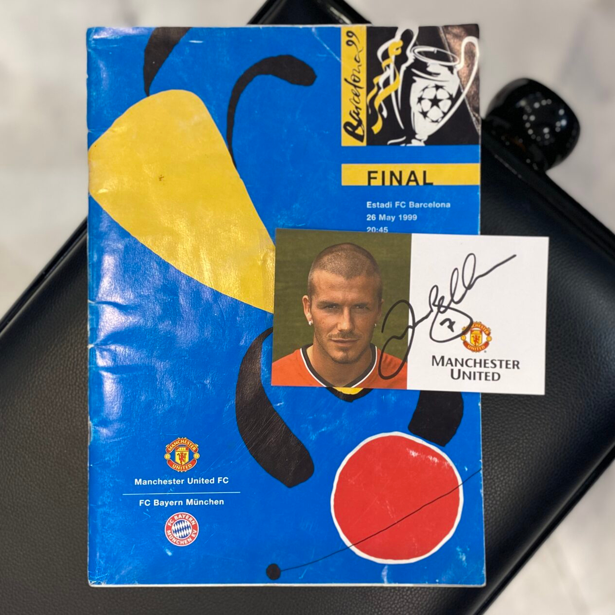 An autographed card and an original program for the FC Manchester United — FC Bayern match in 1999.