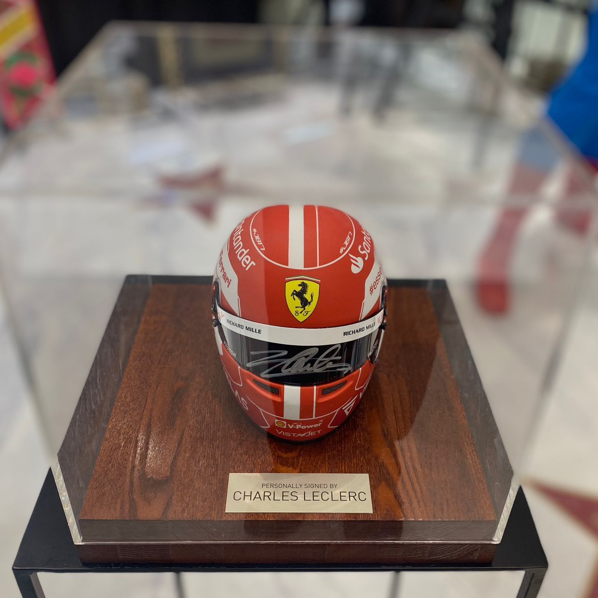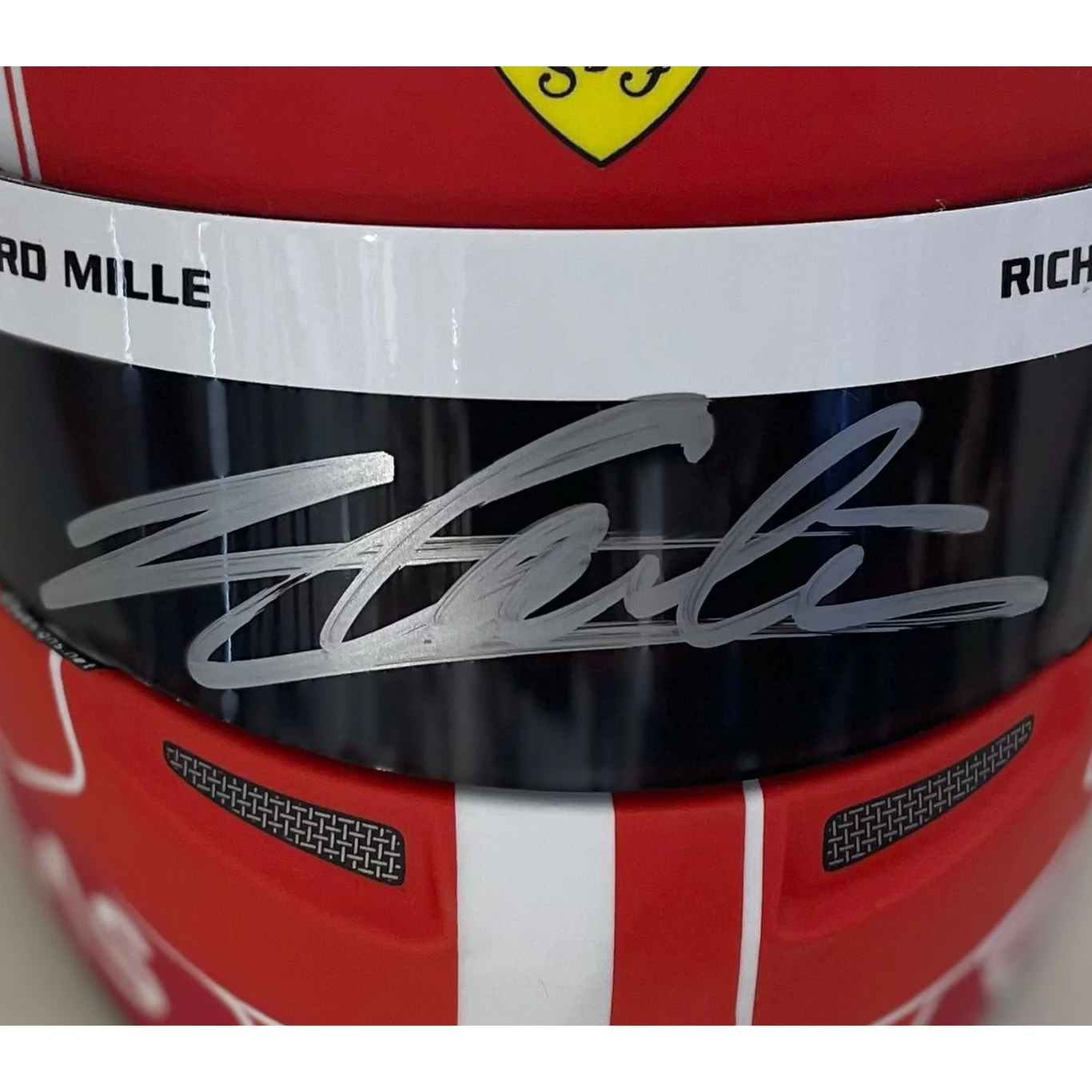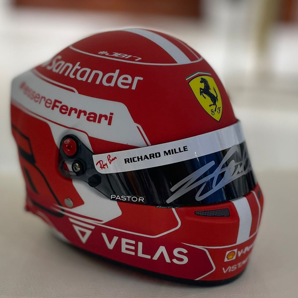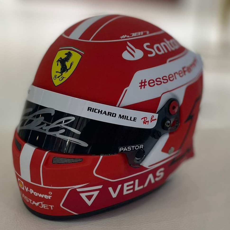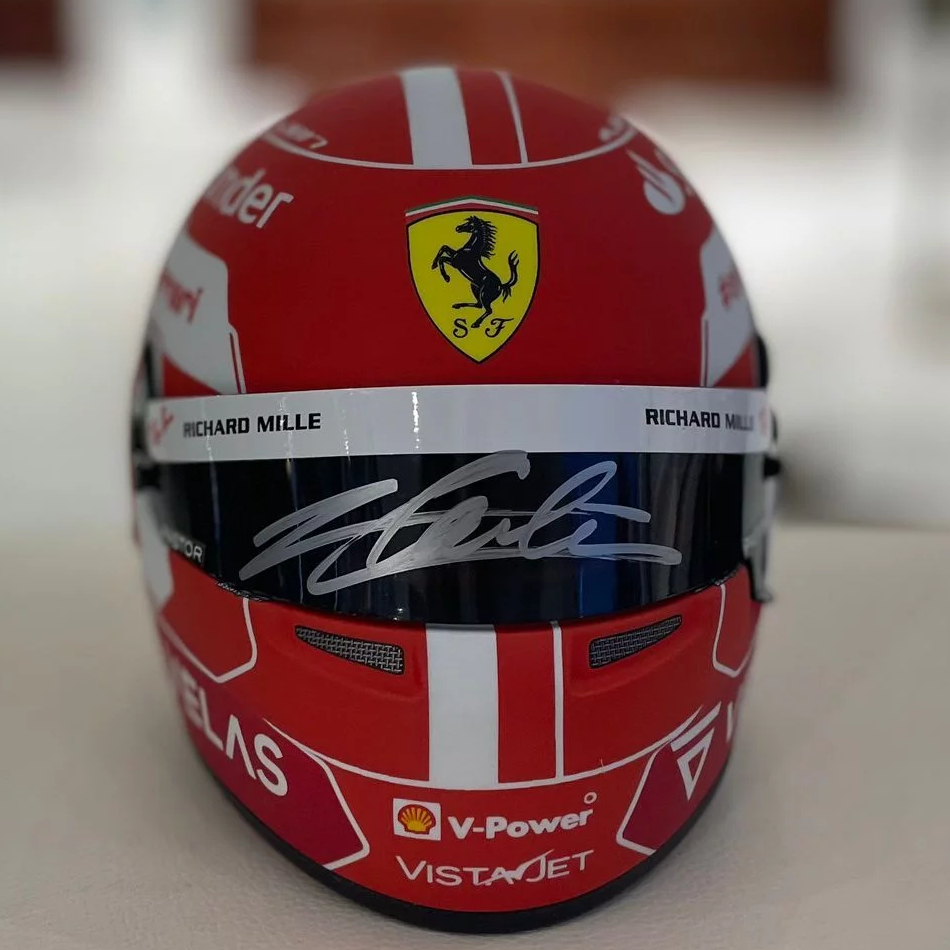 A mini helmet autographed by racing driver Charles Leclair