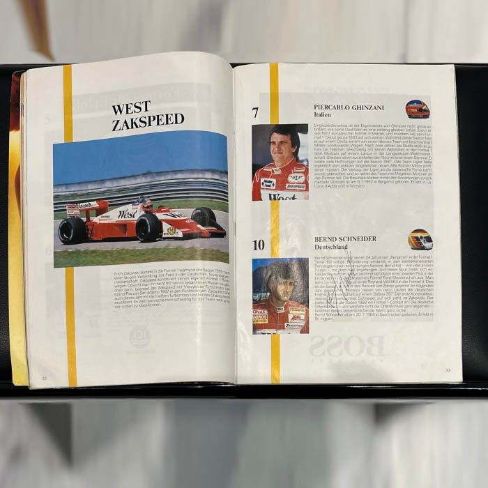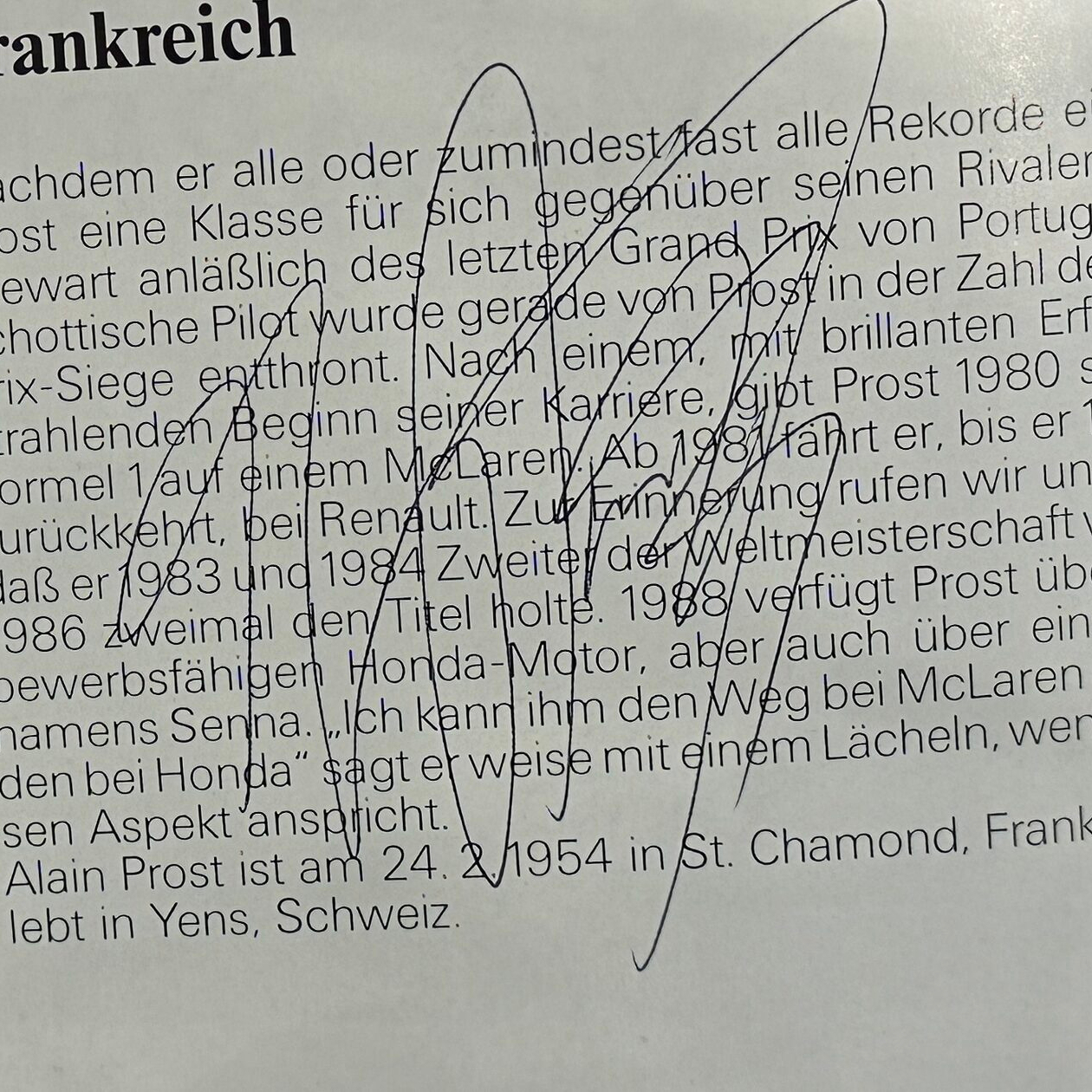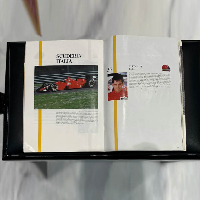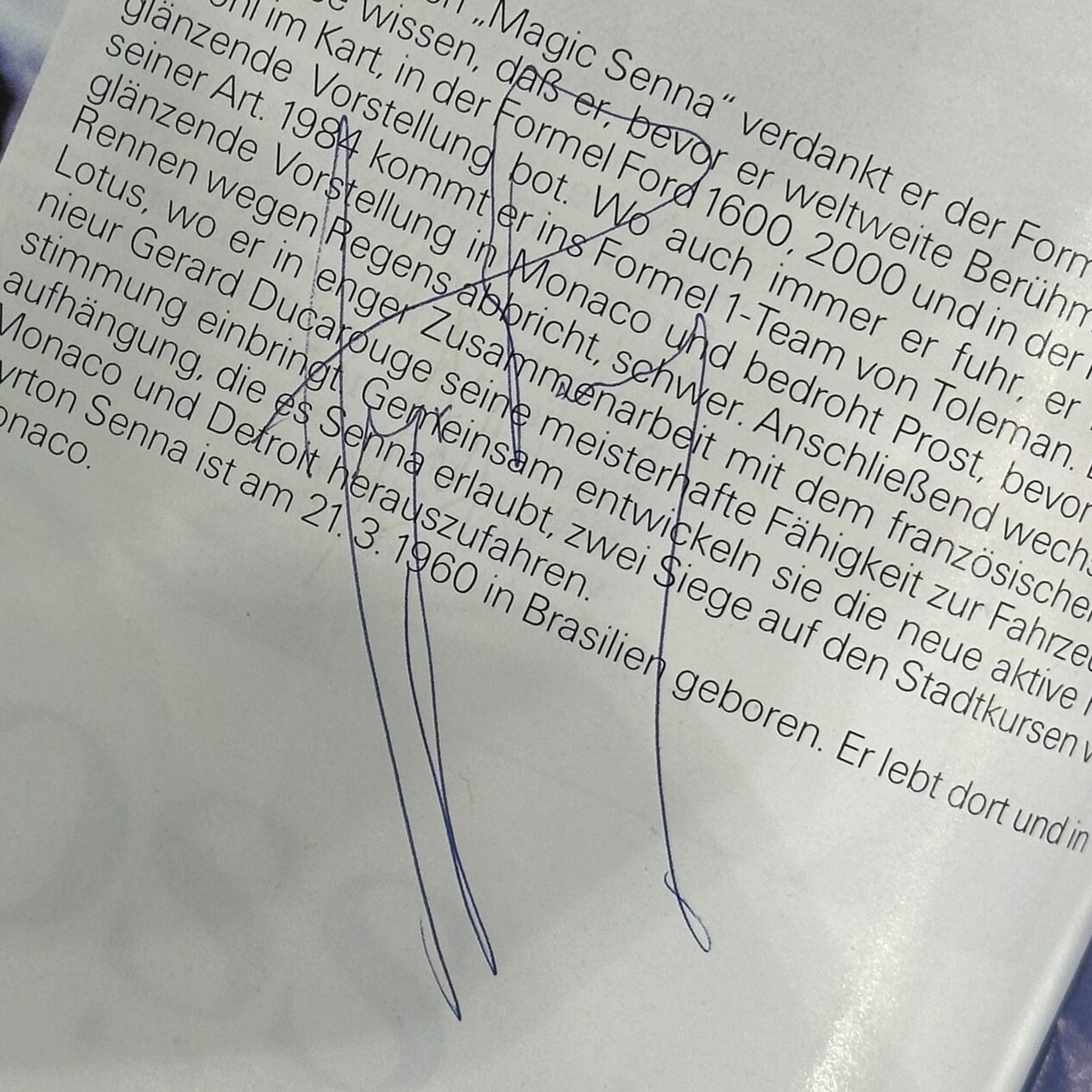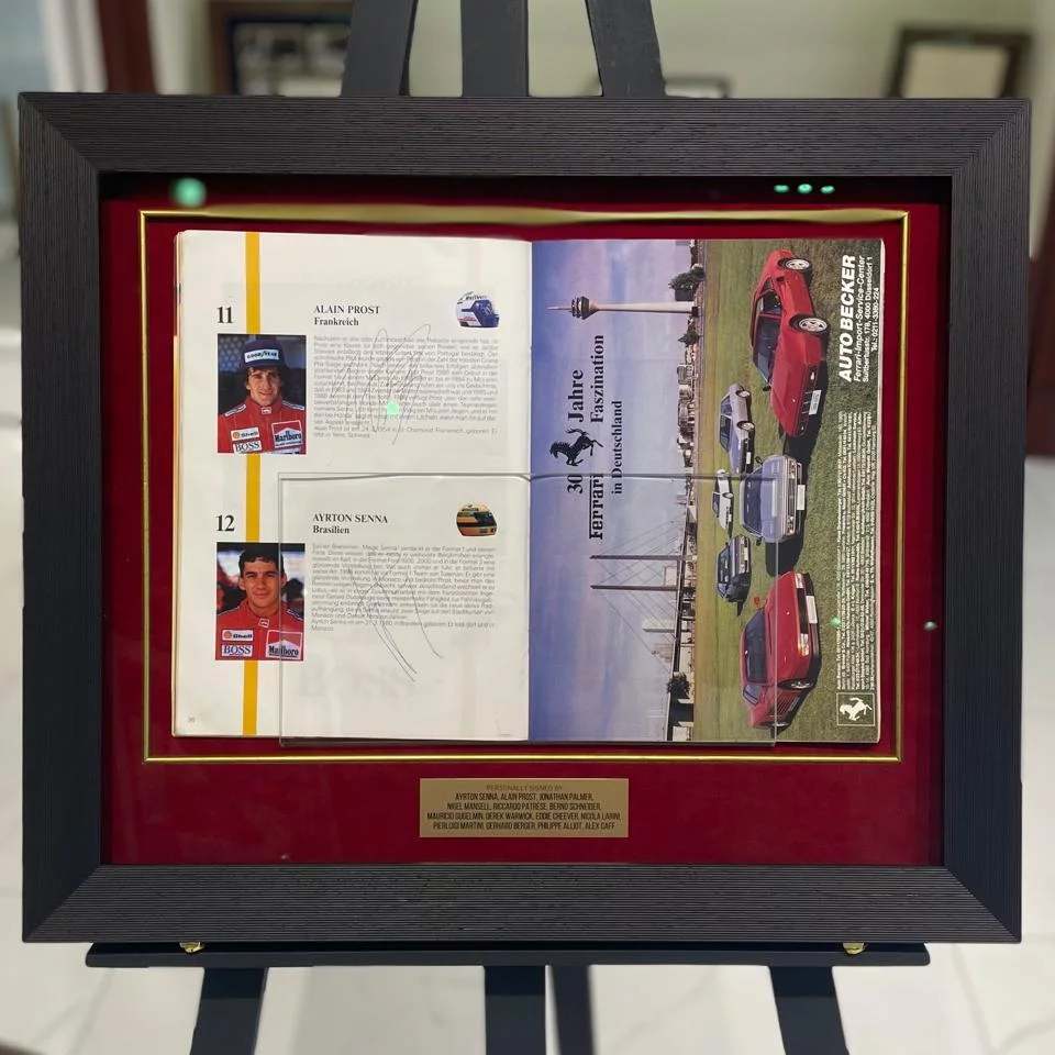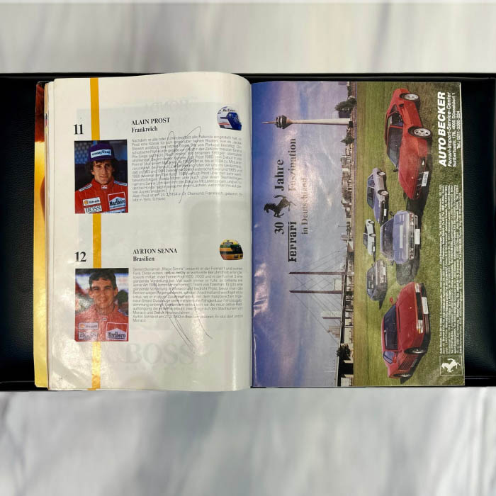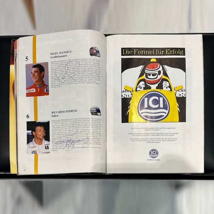 A magazine with 14 autographs of racing drivers: Ayrton Senna, Alain Prost, Jonathan Palmer, Nigel Mansell, Riccardo Patrese and others