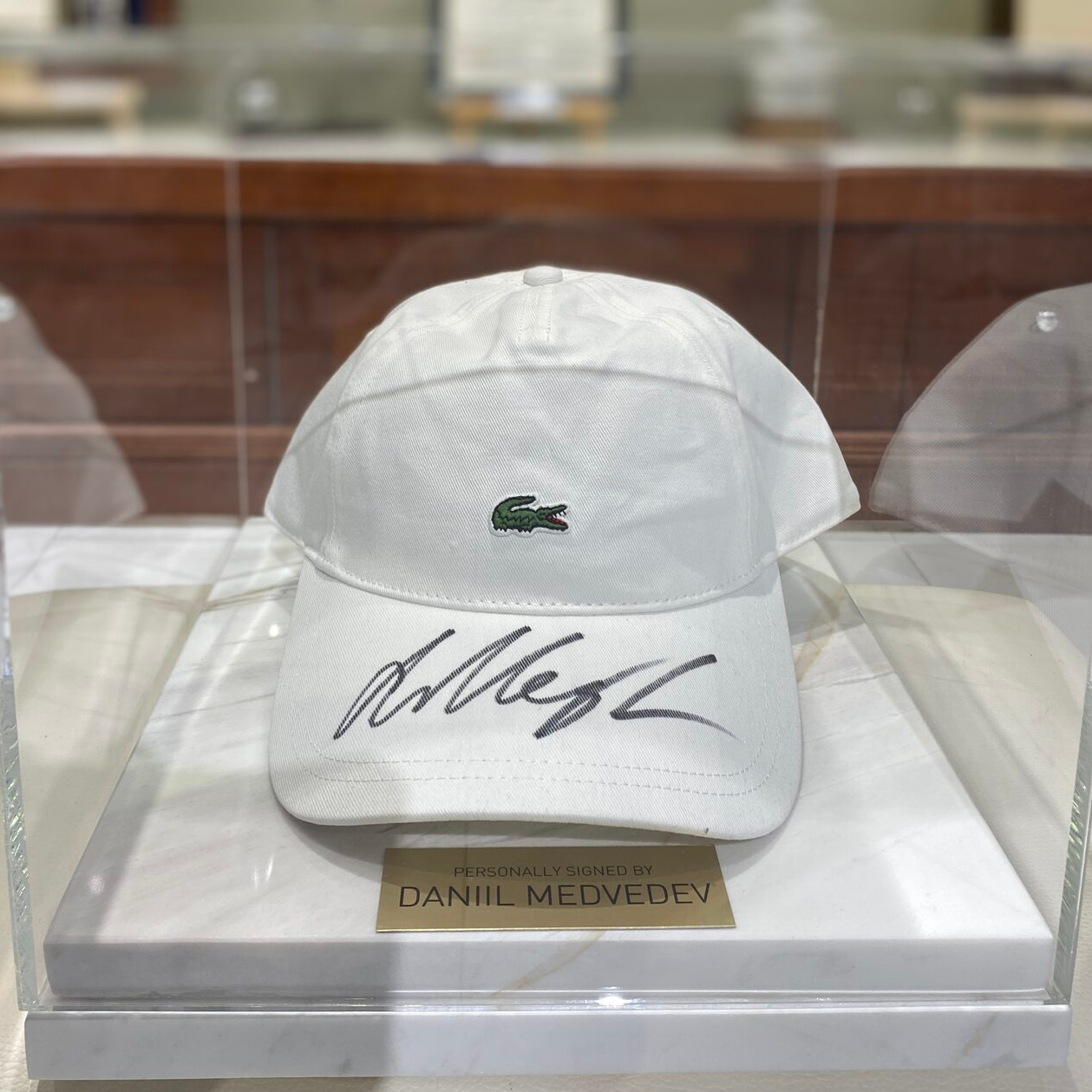 Tennis player Daniil Medvedev's cap, white marble