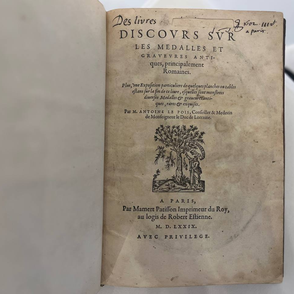The book "Reflections on ancient medals and engravings, mostly Roman." Antoine Le Poix, Paris, 1579