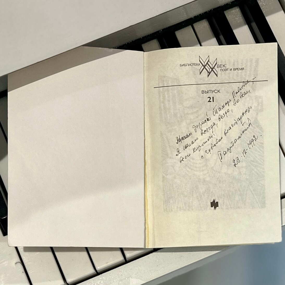 The book "Poems and poems" with a handwritten wish and an autograph by Rasul Gamzatov