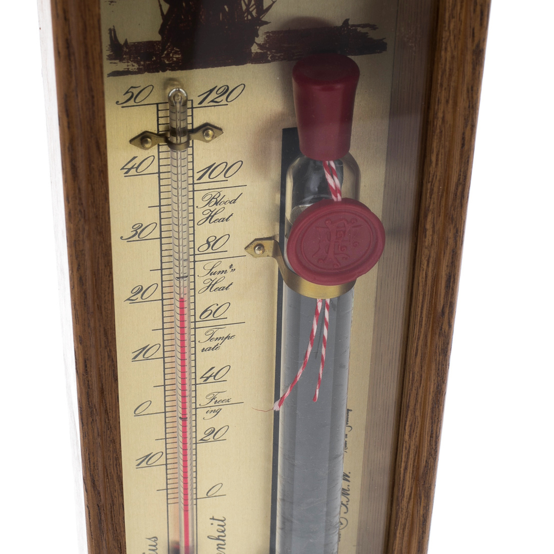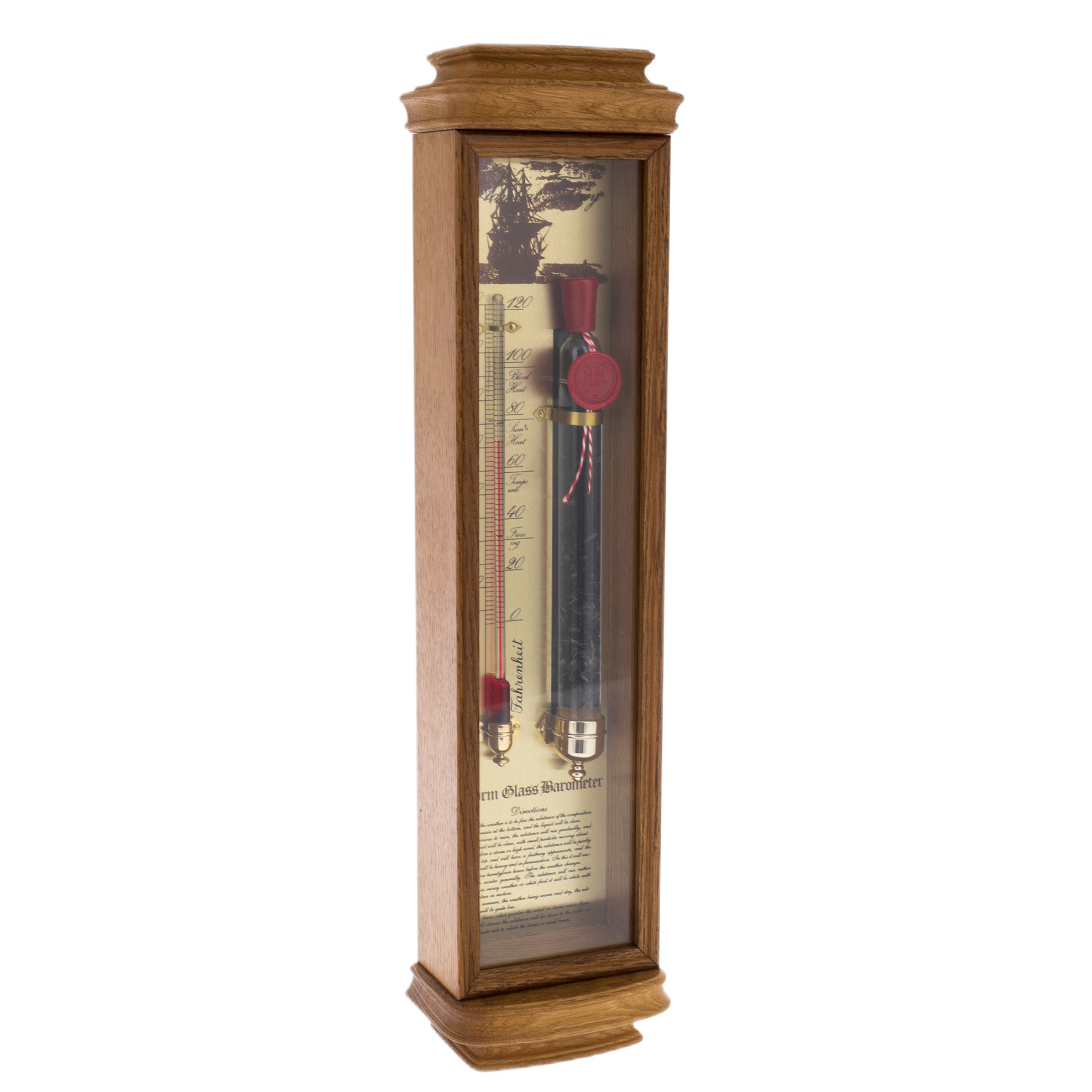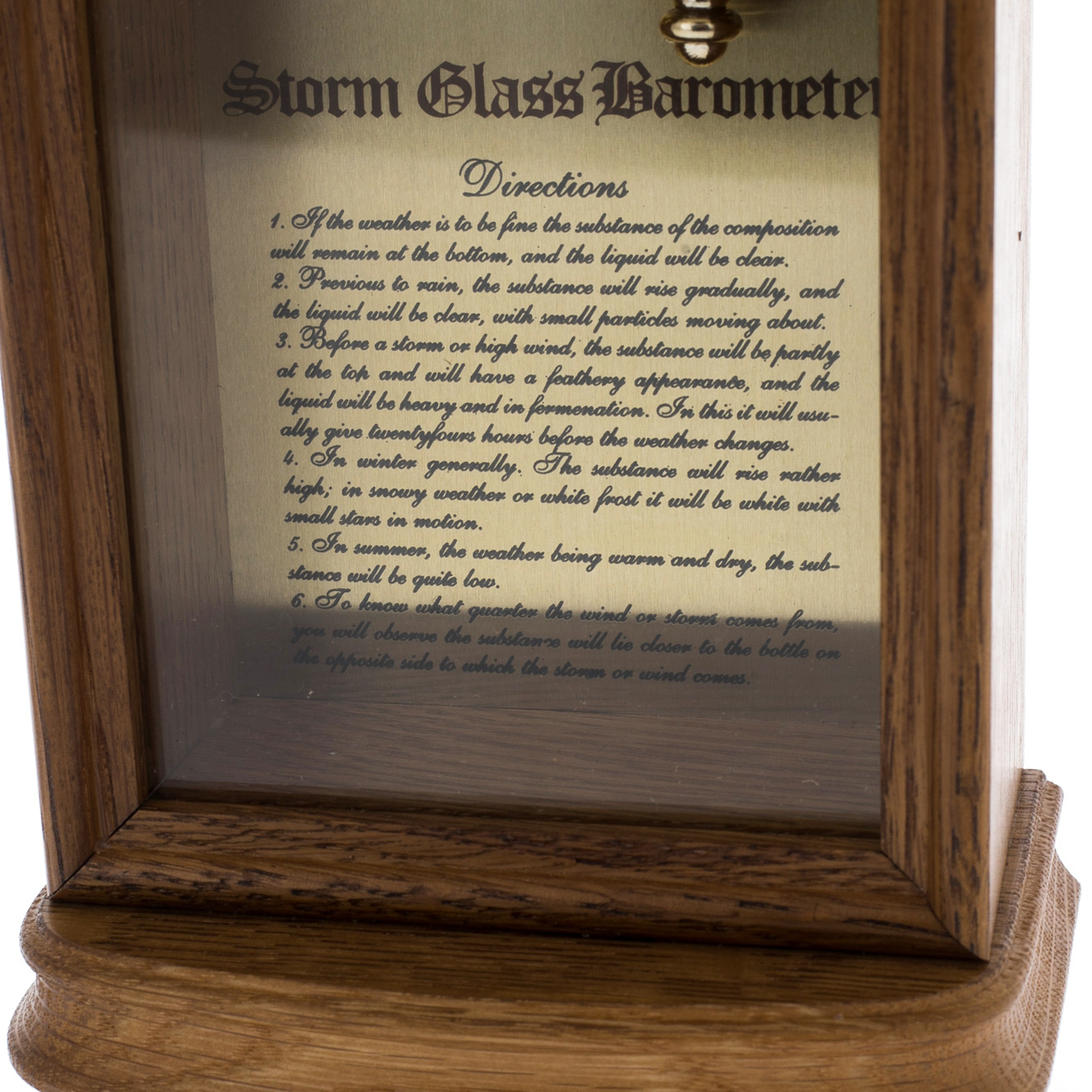 Storm barometer Storm barometer Stormglass (stormglass, Dutch storm — "storm" and glass — "glass") is a chemical meteorological device consisting of a glass flask or ampoule filled with an alcoholic solution in which camphor, ammonium chloride and potassium nitrate are dissolved in certain proportions. One of the names used in the 19th and early 20th centuries along with the name "stormglass" is "baroscope".