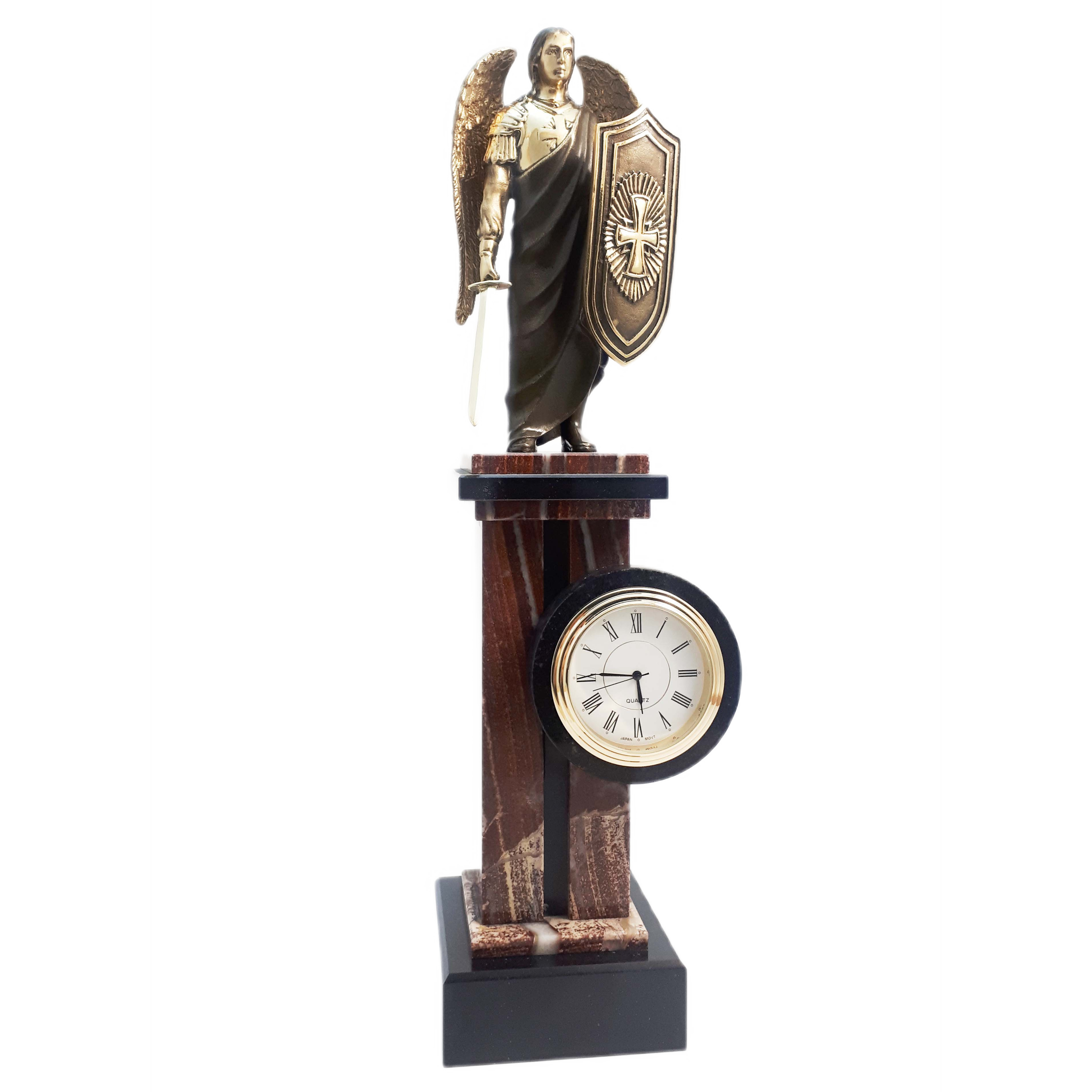 Clock-column made of bronze, jasper and dolerite "Archangel Michael"