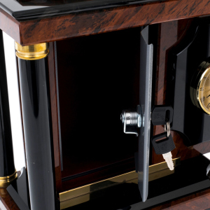 Such watches can transform any room – a fireplace room, a living room or a study. Thanks to the restrained color scheme, this piece of decor will fit into any style. A mantel clock will be an excellent gift, especially since it comes with a gift case.