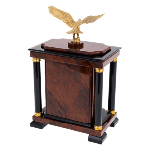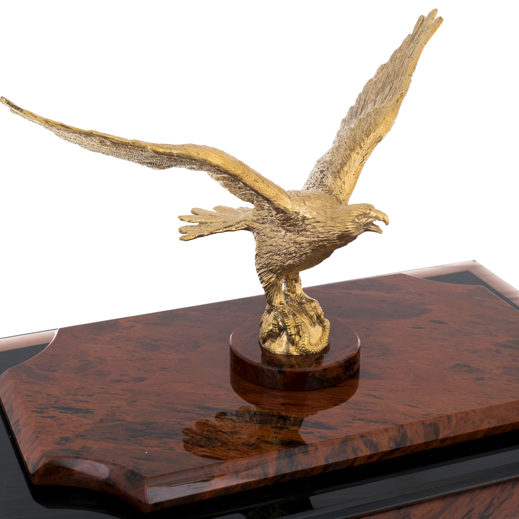 Часы-сейф из обсидиана "Орёл" — предмет для тех, кто ценит не только роскошь формы, но и глубину символа. Архитектура корпуса выдержана в строгих пропорциях: массивное основание, колонны с позолоченными капителями, широкая площадка под часовым блоком. В верхней части — орёл с расправленными крыльями, воплощающий власть, дальновидность и силу, удерживающую равновесие между спокойствием и контролем. Он придаёт композиции характер триумфа и уверенности, превращая изделие в знак статуса, а не просто аксессуар для интерьера.