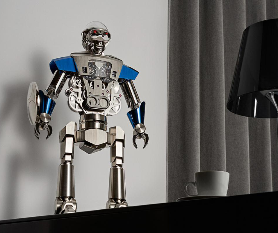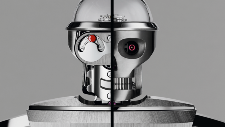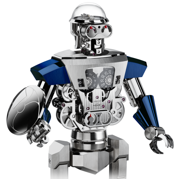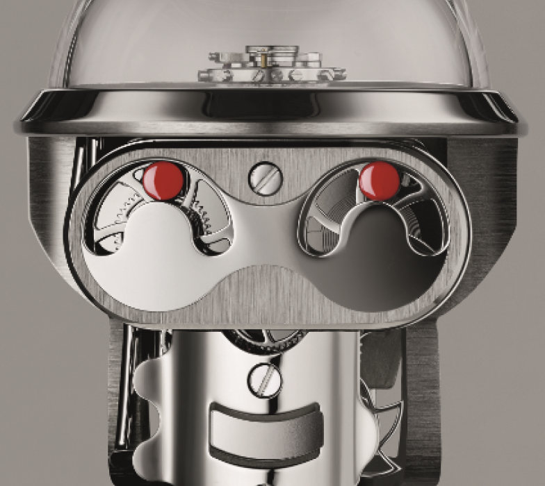 Materials:polished glass dome, brass and stainless steel, shoulder pads and forearms with CVD treatment.