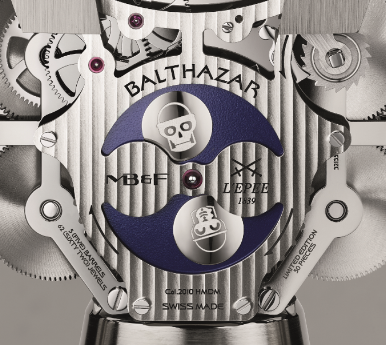Finishing:Geneva waves (bridges of the phases of the Moon and power reserve), polishing, sandblasting, round and vertical satin and decoration in the form of star formation.