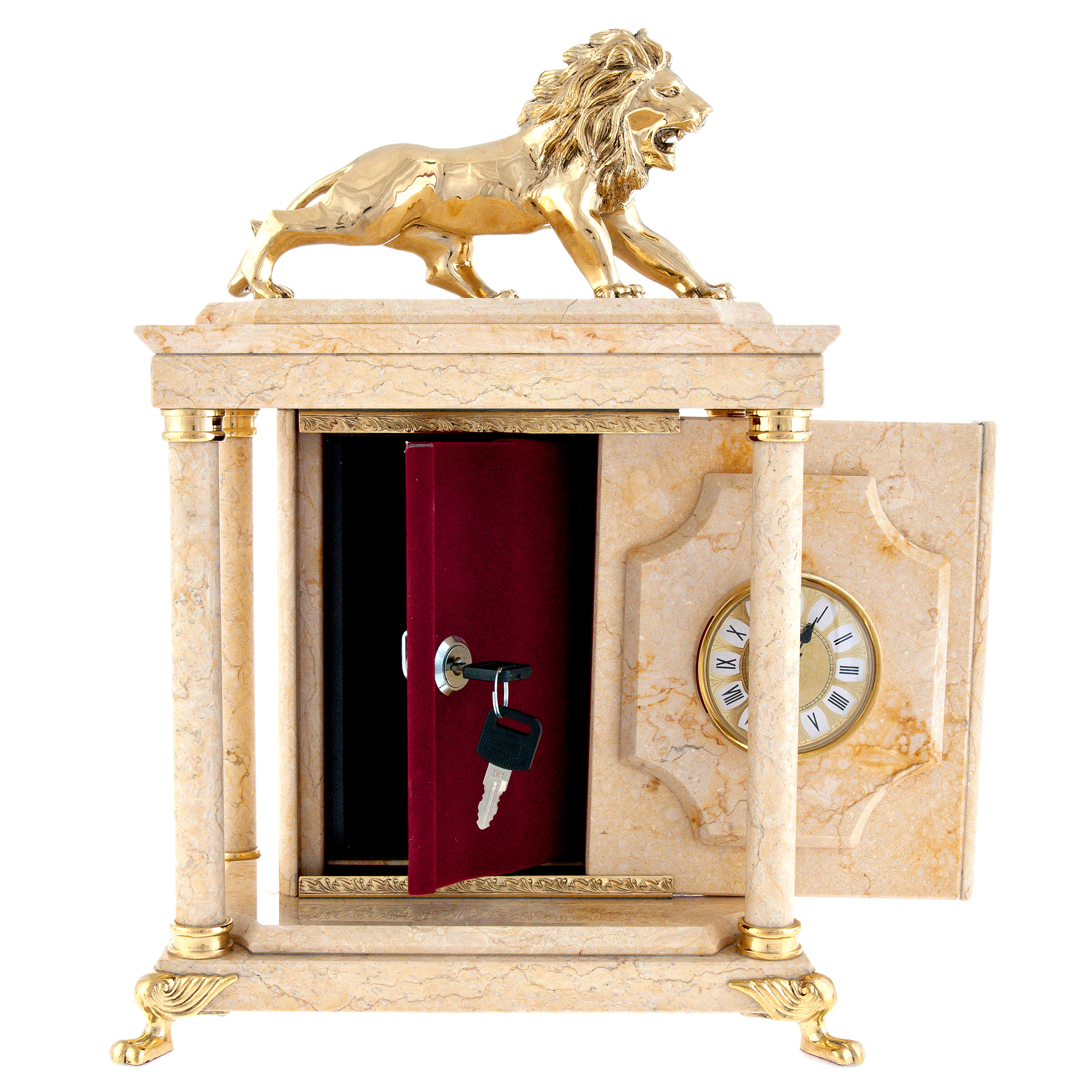 The Leo safe watch is the embodiment of a unique idea of combining a safe with a luxury watch. The safe is made of marble, decorated with a bronze lion made using the technology of artistic casting. The luxury of bronze, the strength of natural stone, the symbolism of decoration – all this makes the safe watch a true work of art. The watch safe is equipped with a durable thrust mechanism, which will allow you to keep the most valuable items safe and sound. An exquisite, necessary souvenir designed to serve the benefit of its owner.
