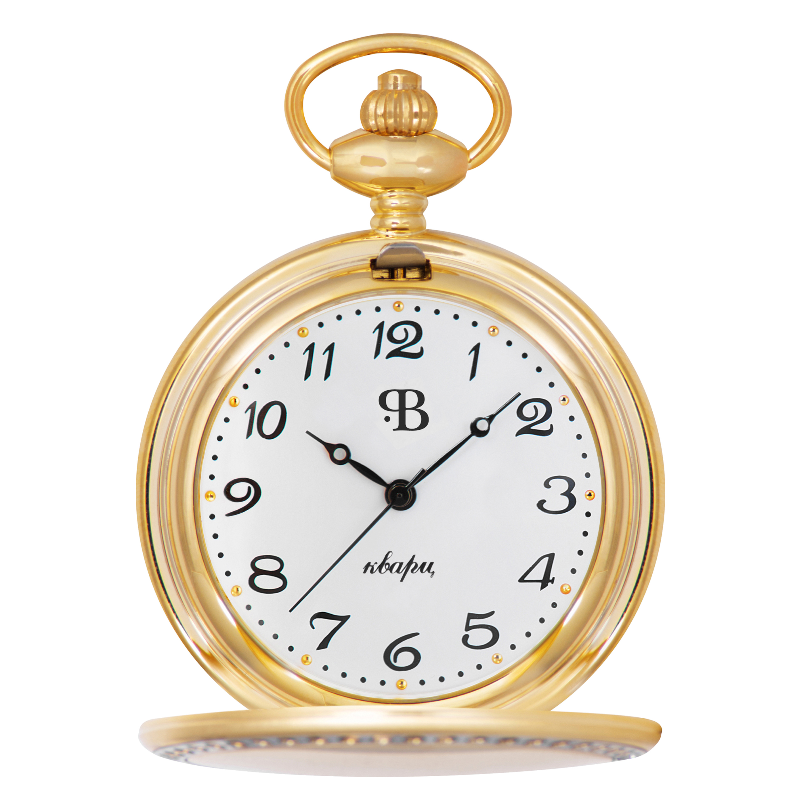 Карманные кварцевые часы Русское время бело-золотистые, комбинированное желтое золото
