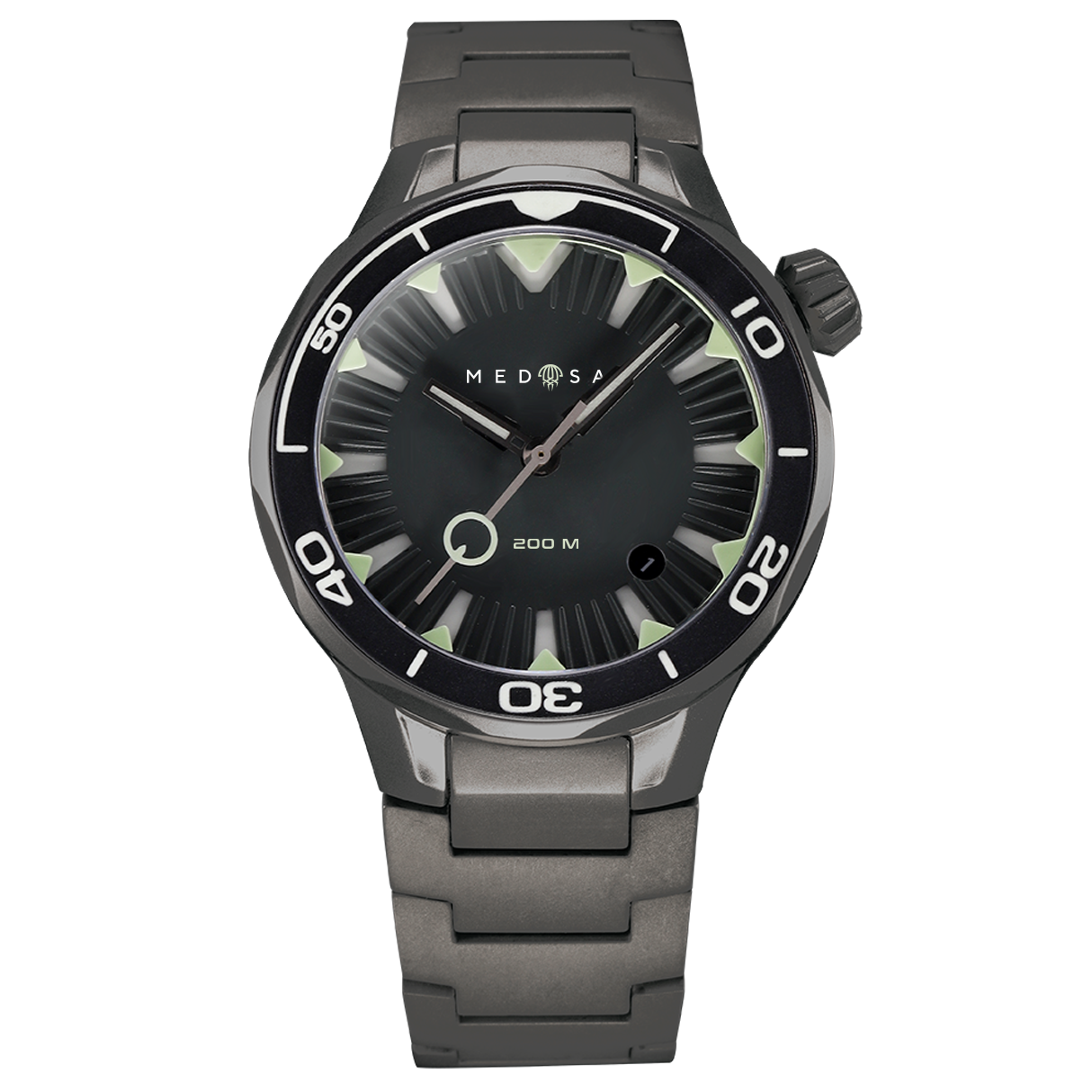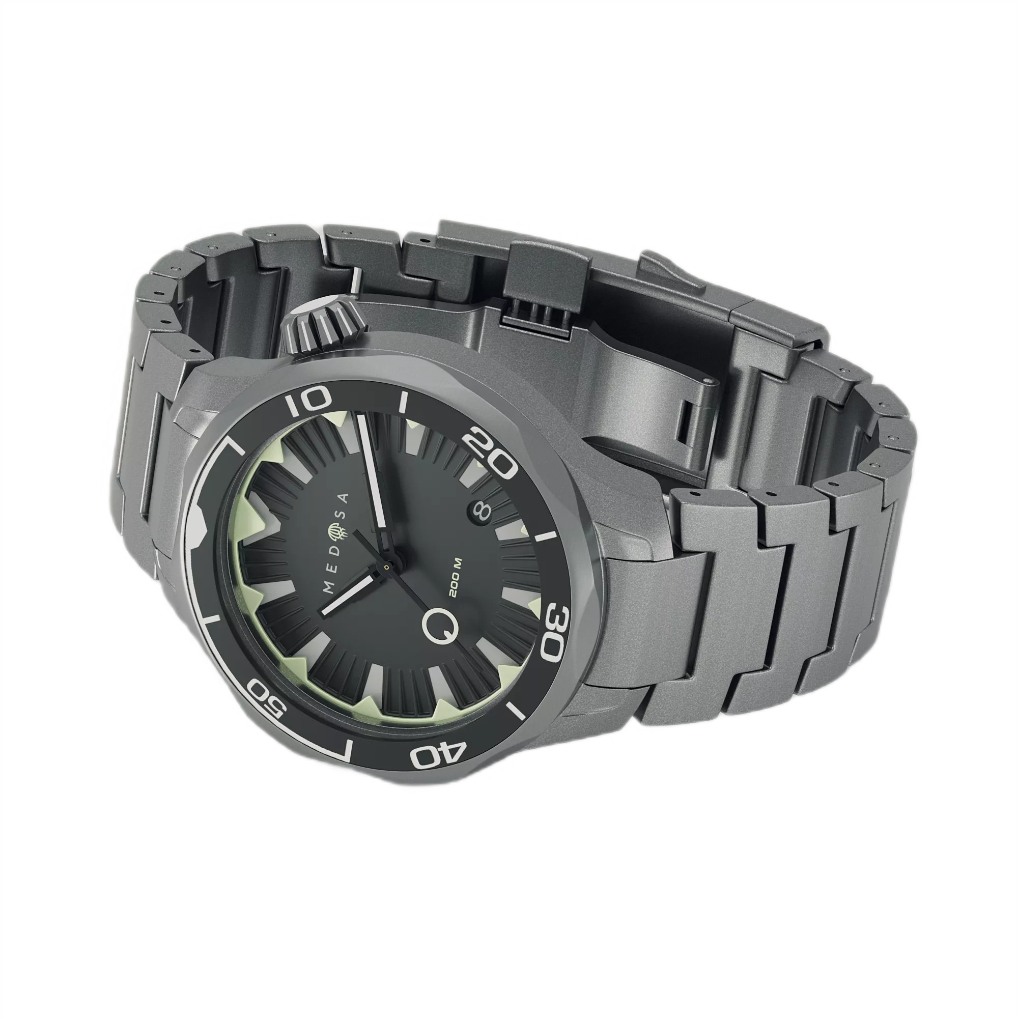 Lincor "Medusa Ashy" Self-winding Black Wristwatch with Ash Strap