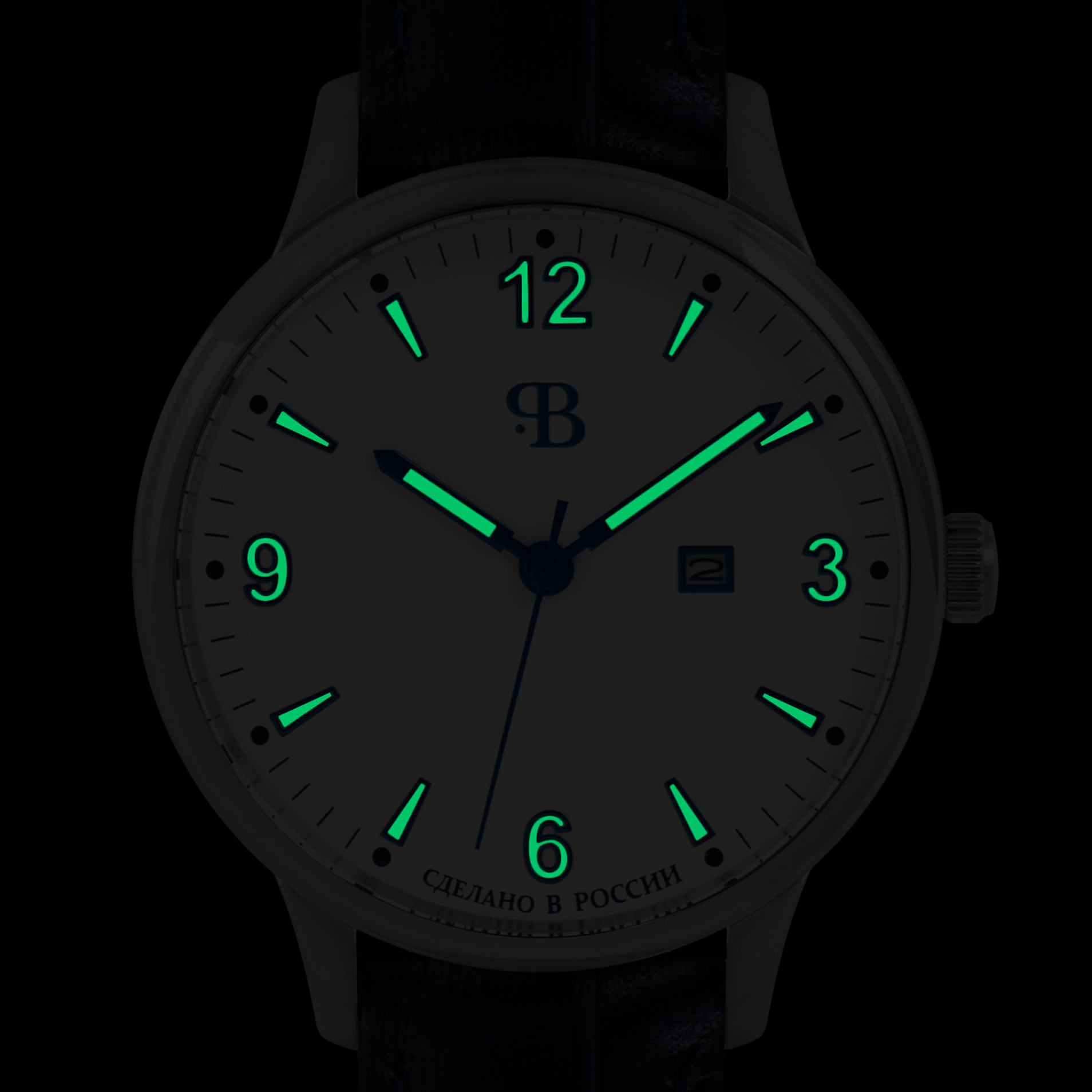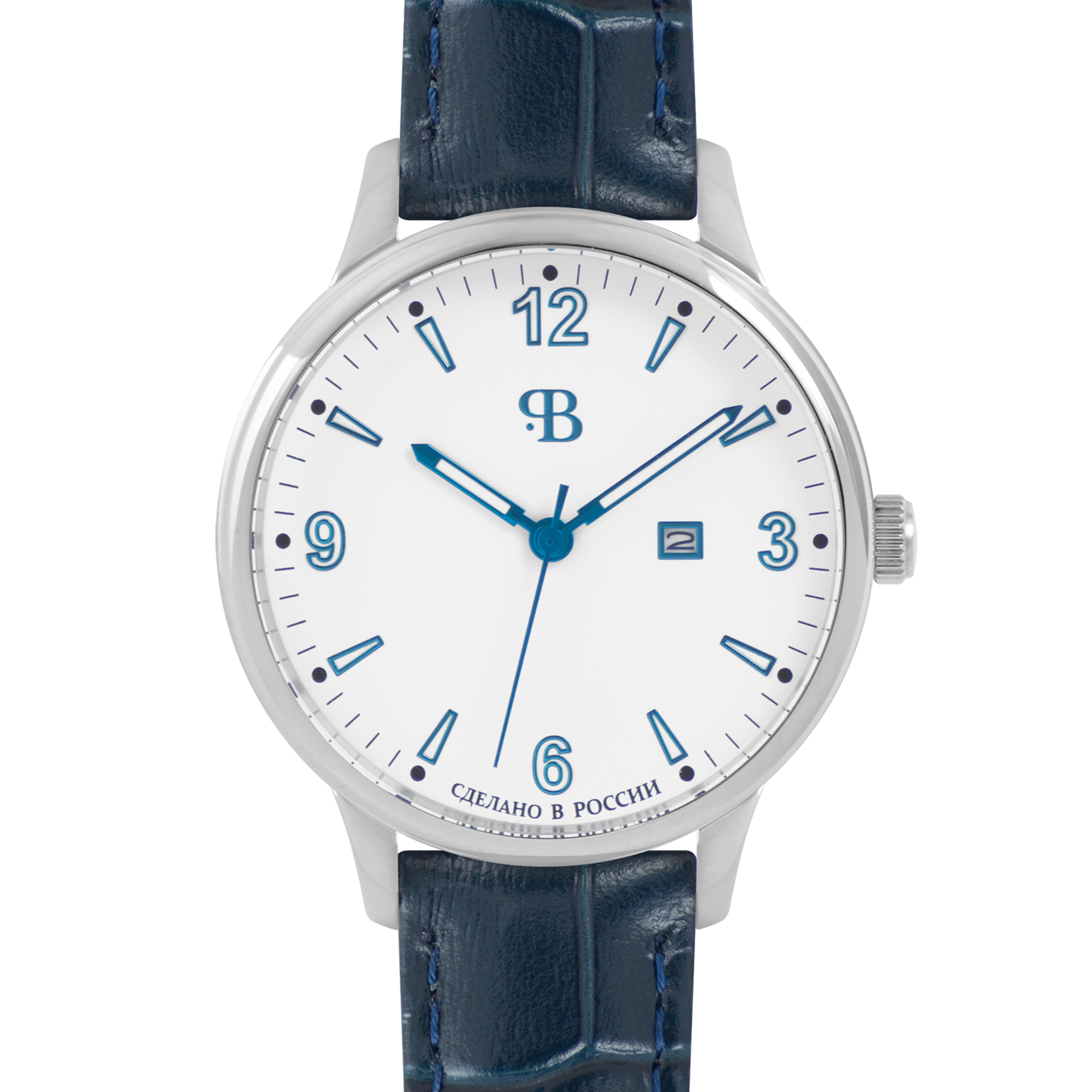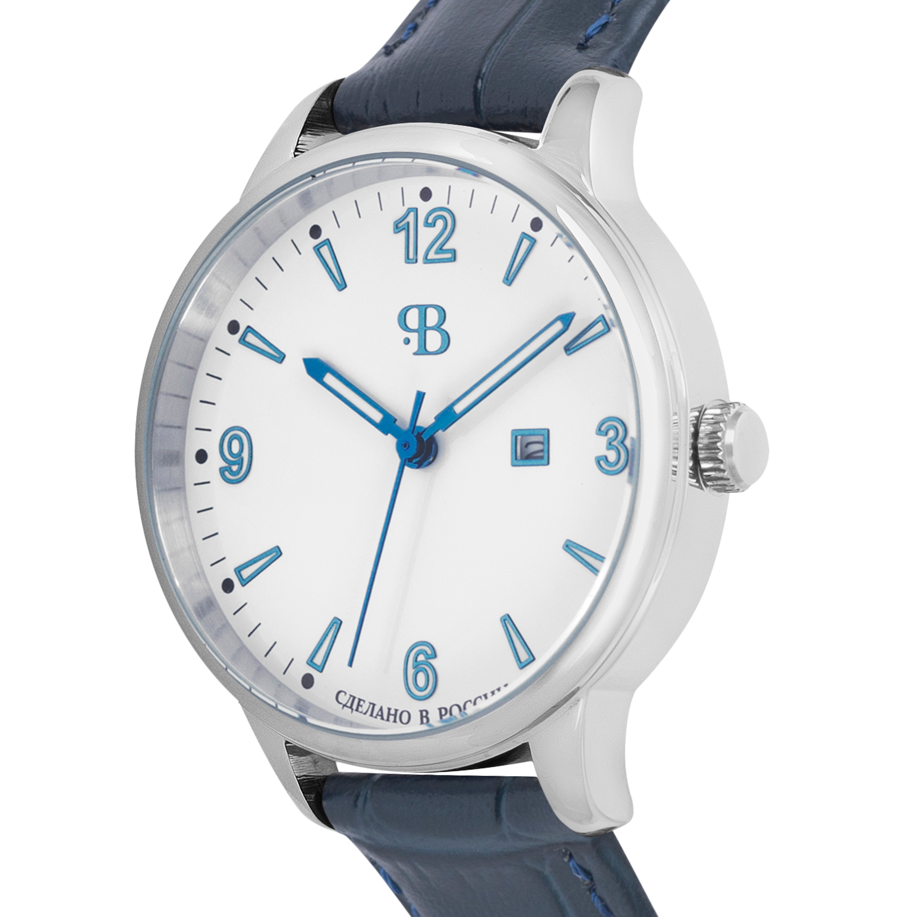 Наручные кварцевые часы Русское время бело-серебристые с темно-голубым ремешком