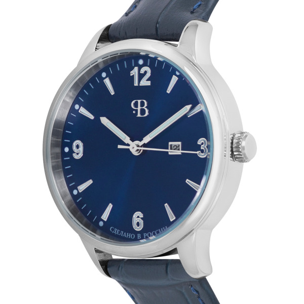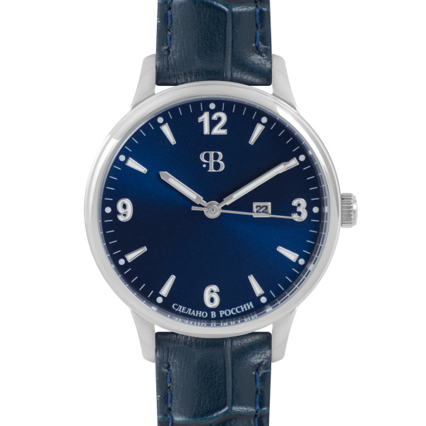 Quartz Wristwatch Russian Time blue-silver with dark blue strap