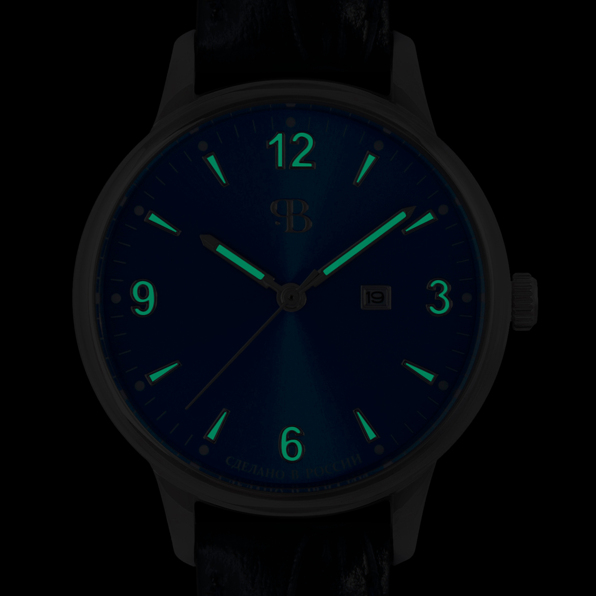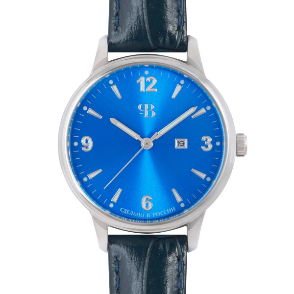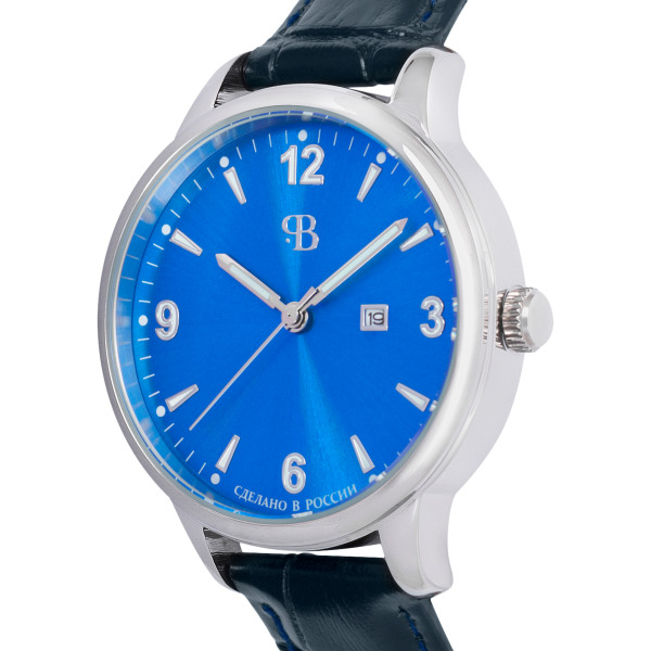Nika Silver "Celebrity" Wristwatch with dark blue strap Silver "Celebrity" Wristwatch with dark blue strap The NIKA wristwatch with a dark blue strap embodies the elegance and sophisticated power of time. Every detail in this accessory is carefully thought out to emphasize the status of its owner and give a feeling of absolute control over the passage of time. The case of the watch, made of precious silver, radiates a restrained shine that attracts glances without allowing excessive pretentiousness. The dial with Roman numerals and clear hands offers unsurpassed readability, accentuating the harmony of form and functionality. The coat of arms of the Russian Federation is proudly displayed on the top of the dial, a symbol of strength and tradition that adds a special grandeur to every moment. The dark blue genuine leather strap not only provides comfort, but also serves as the finishing touch to the overall composition. It frames the silver case, creating a harmony of color and texture that emphasizes the sophistication of the product. The stainless steel clasp ensures a secure fit and adds confidence to every detail. The mechanism, enclosed in a silver case, opens to the eye through a transparent back cover. This element is a real altar of engineering art, demonstrating the craftsmanship of the NIKA watch factory, whose roots go back to the legendary Soviet traditions of watch production, such as Slava and Polet. Every movement of this mechanism is a symphony of precision and perfection. The watch is delivered in an elegant branded box, which emphasizes its status as a unique gift. Such an accessory is not just a way to keep track of time, it is a manifestation of respect for art, traditions and taste. NIKA watches are the choice of those who appreciate quality, luxury and the power of symbols.