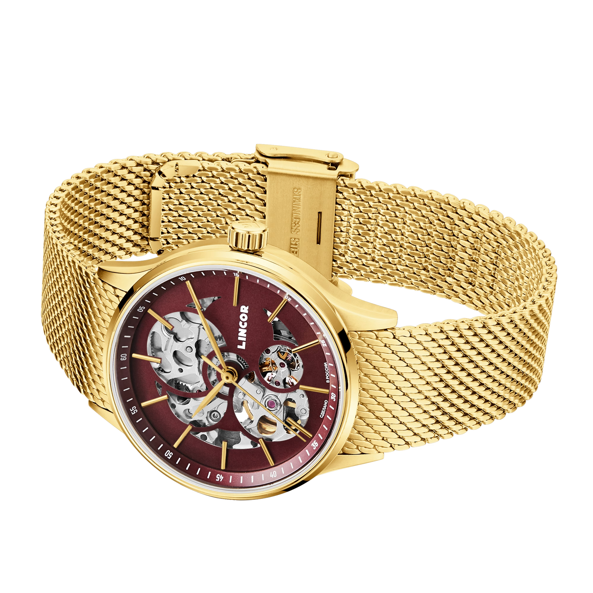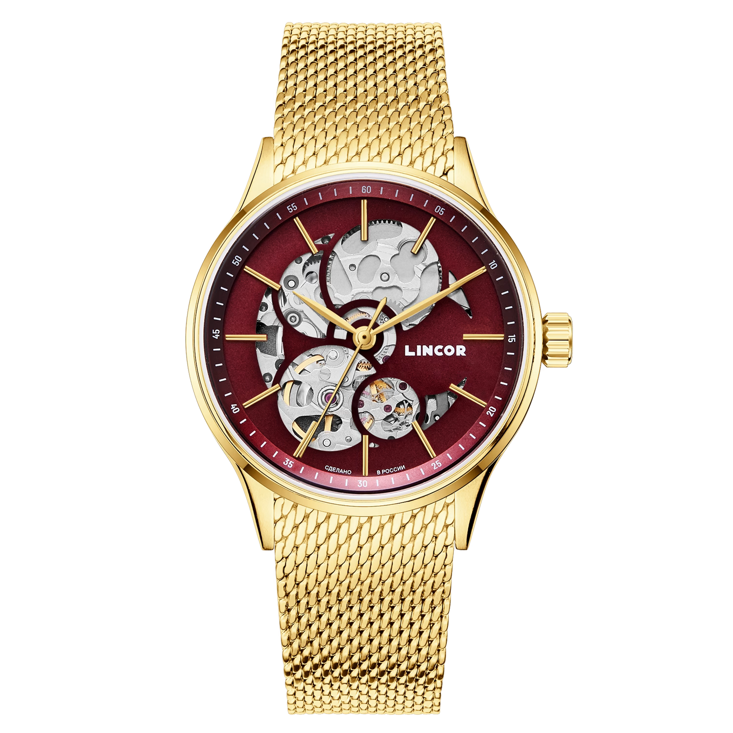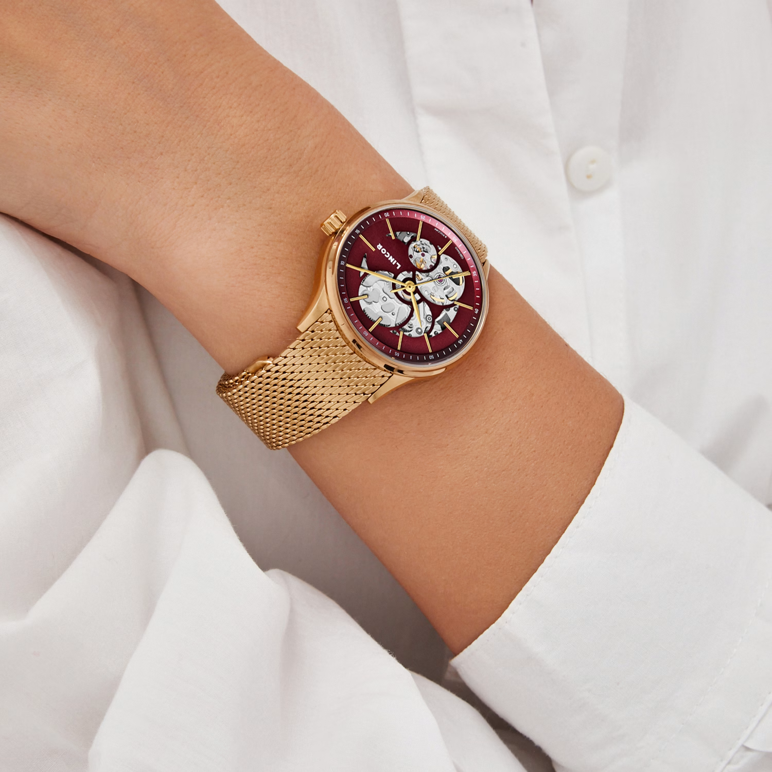 Lincor 4119 Self-winding Mechanical Wristwatch, Golden Red