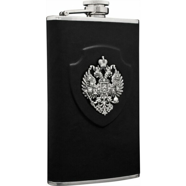 The flask of the executive class "Empire" is made of steel and is covered by hand with calfskin. It is decorated with the silver coat of arms of tsarist Russia of a high degree of elaboration.
