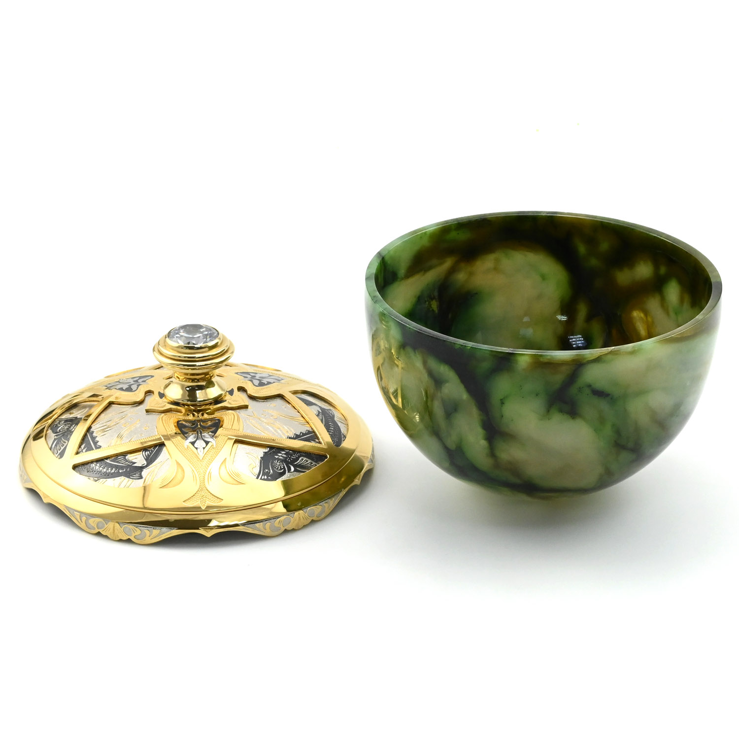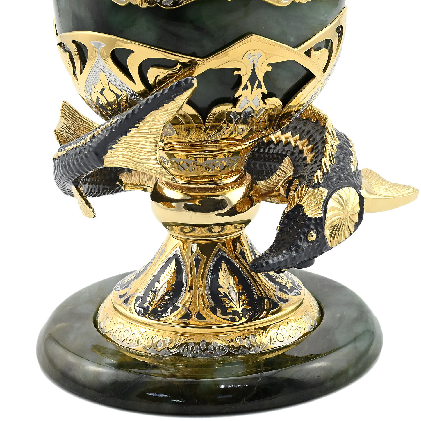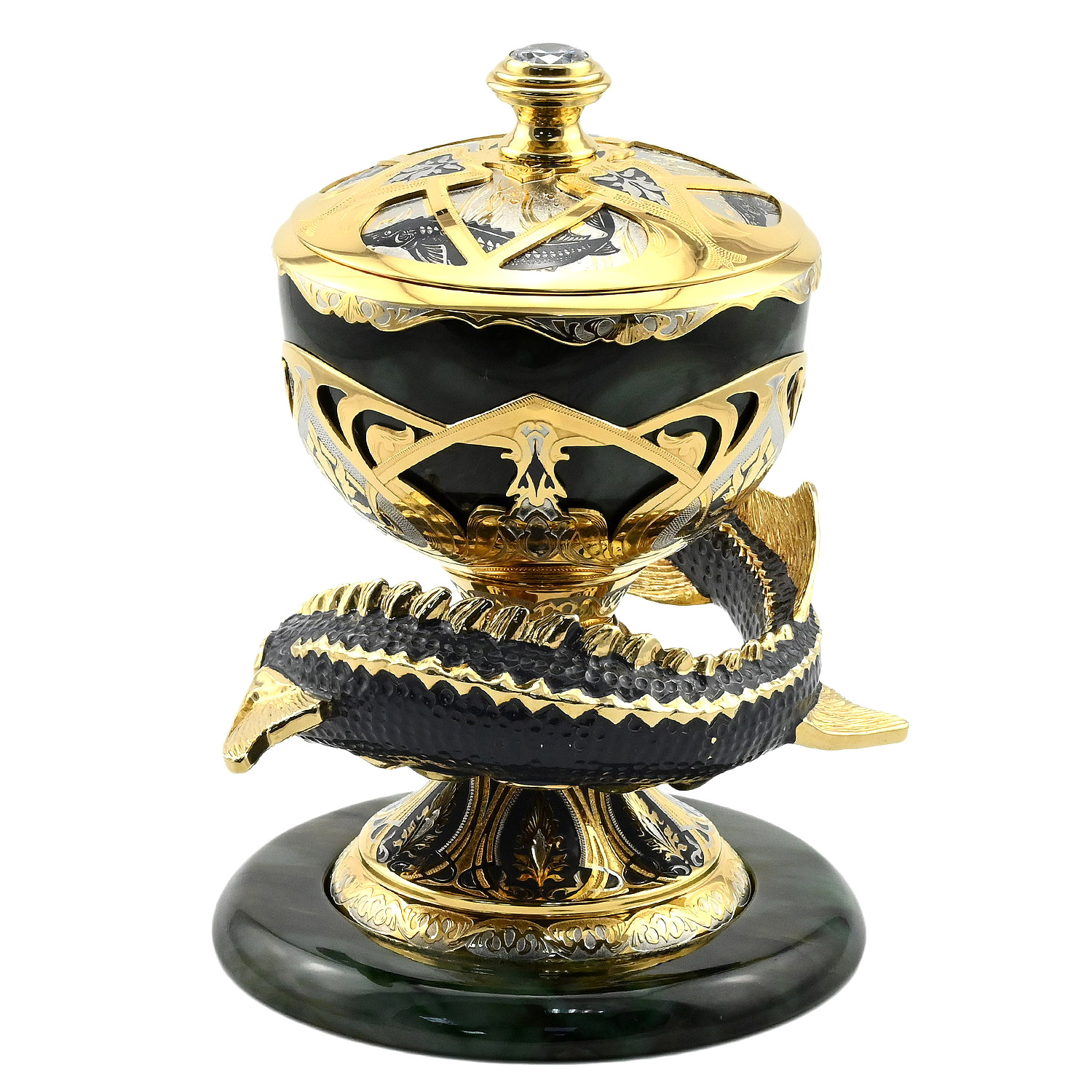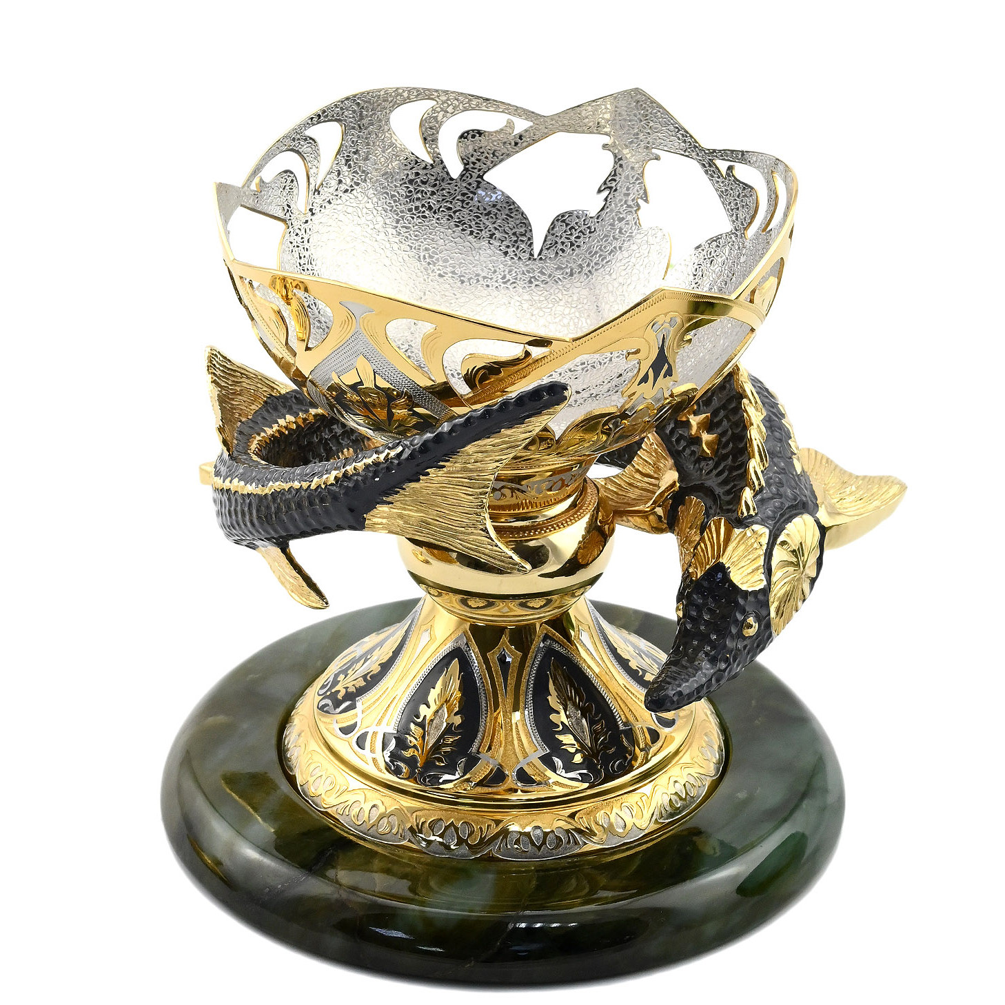 Elite caviar bowl made of jade "Big sturgeon" Zlatoust