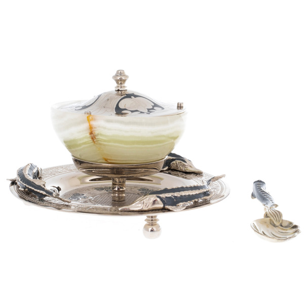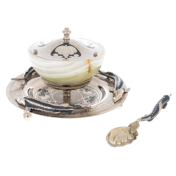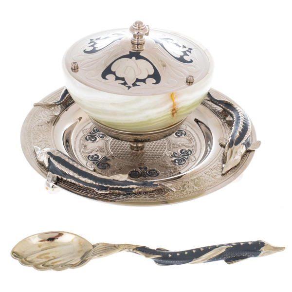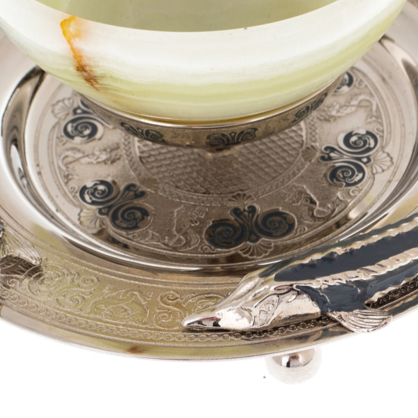 Elite caviar bowl made of jade "Big sturgeon" ZlatoustElite caviar bowl made of jade "Big sturgeon" ZlatoustThe products are made of high quality natural materials. The filigree elaboration of details characterizes the impeccable work of the master.