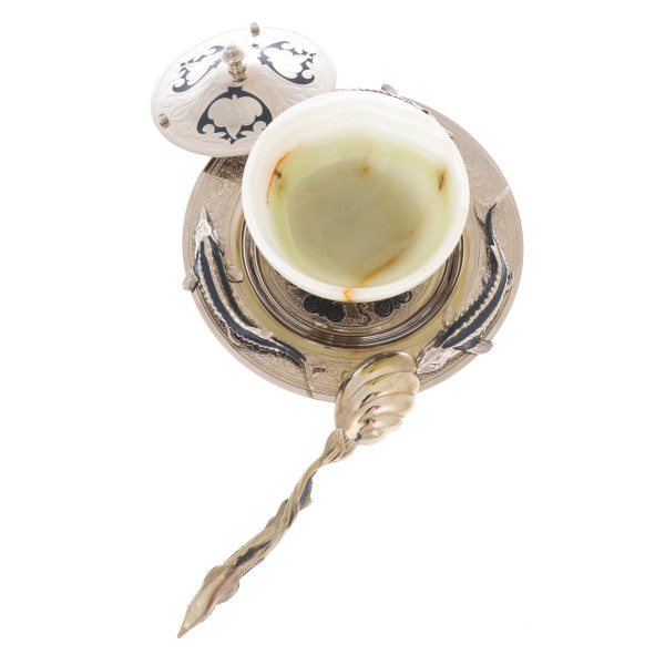 Caviar bowl with ice cream "Poseidon" jasper,enamel, ChrysostomCaviar bowl with ice cream "Poseidon" jasper,enamel, ChrysostomCollections of fine tableware from masters from Zlatoust are spectacularly decorated with painting, etching and gilding. After an elegant pattern is applied to the polished surface, the product is dried in an oven and processed, after which the pattern becomes embossed.