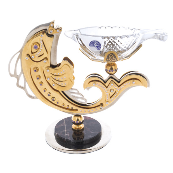 Beluga caviar bowl on a serpentine, ZlatoustBeluga caviar bowl on a serpentine, ZlatoustThe collections of fine tableware from the masters of Zlatoust are spectacularly decorated with painting, etching and gilding. After an elegant pattern is applied to the polished surface, the product is dried in an oven and processed, after which the pattern becomes embossed.