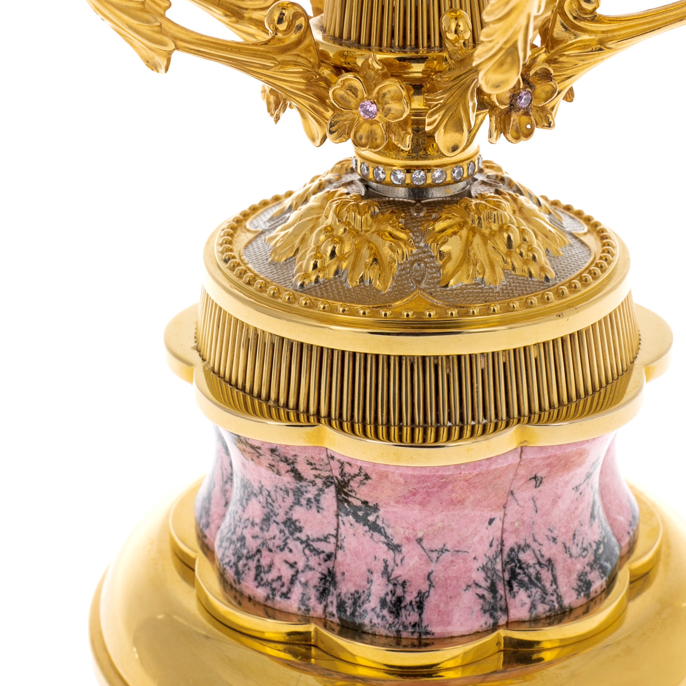 Materials:brass, gold plating, nickel, rhodonite.