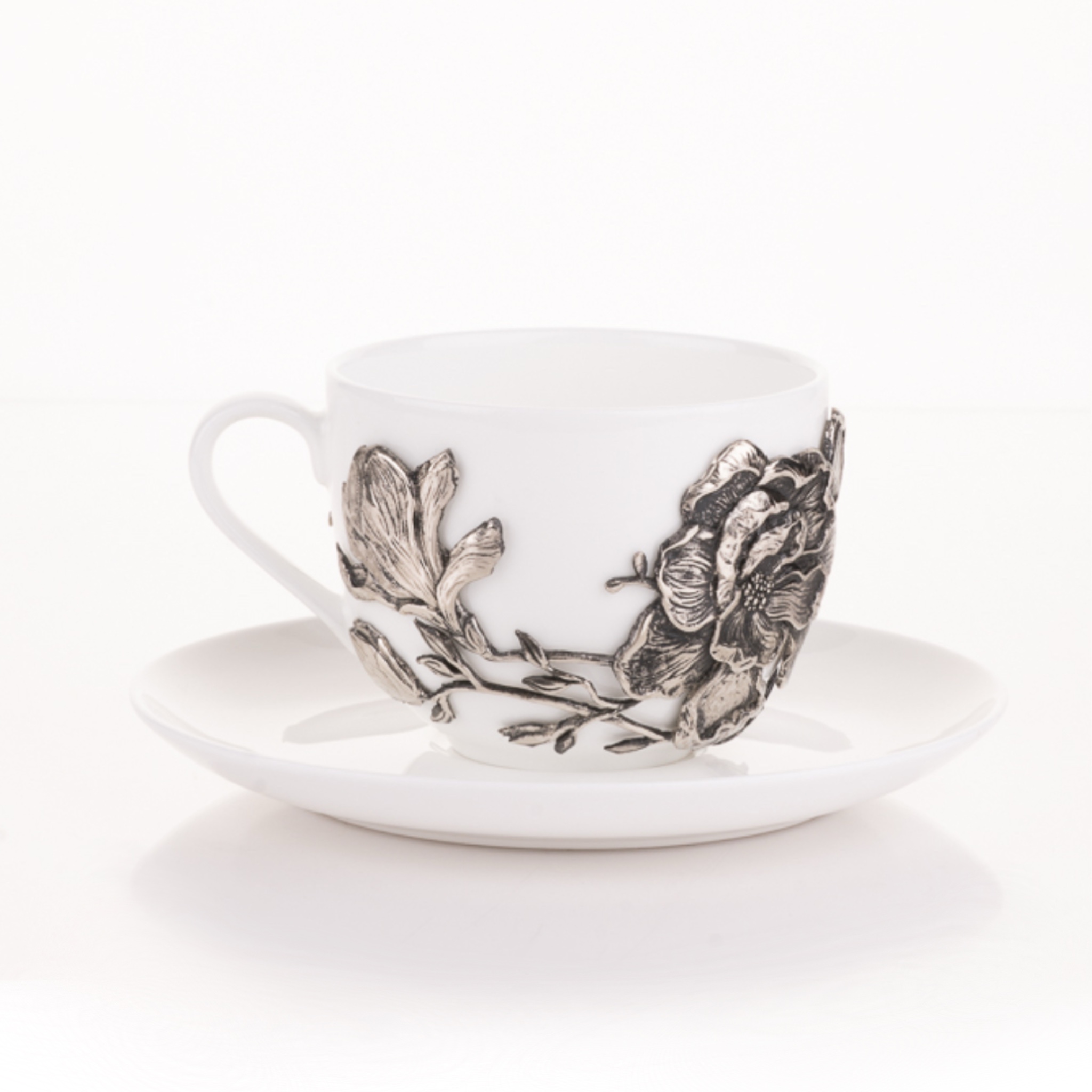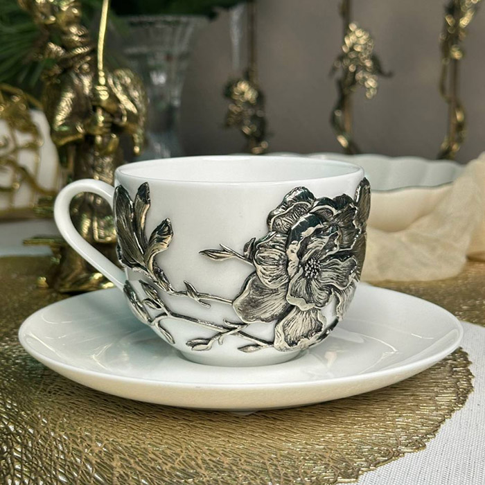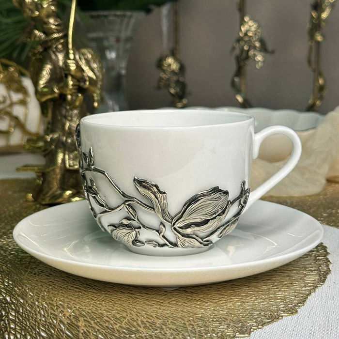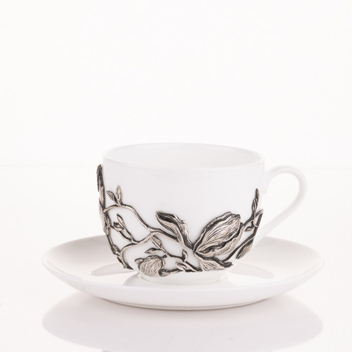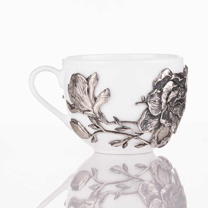 Tea steamer made of porcelain and nickel silver "Magnolia"