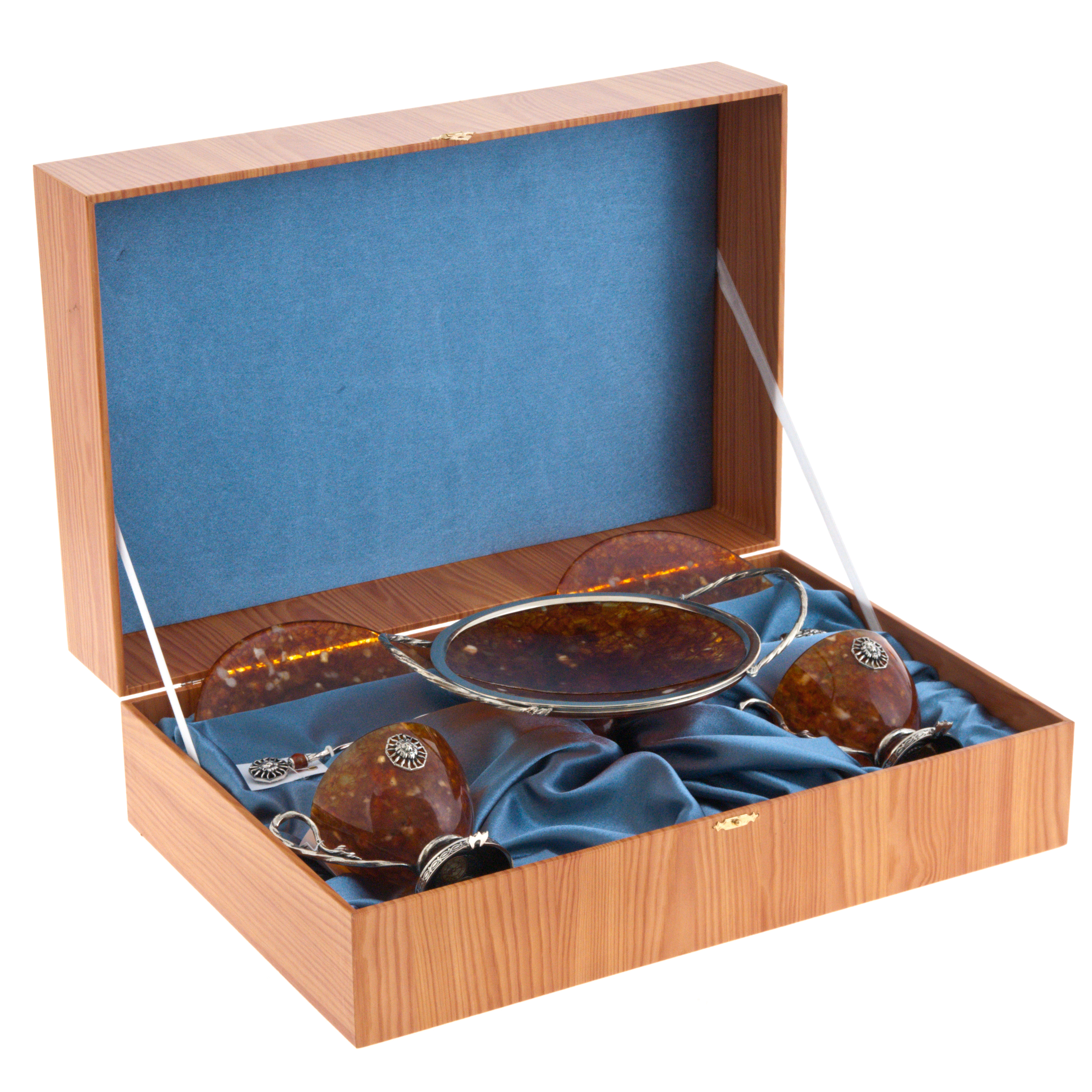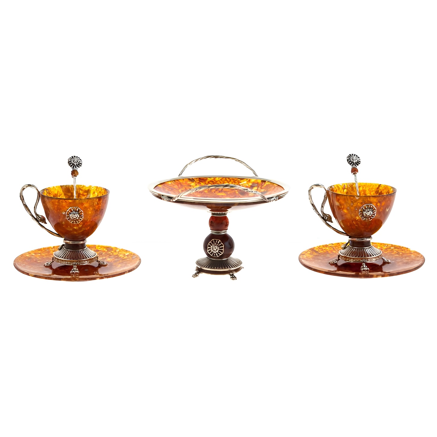 Amber tea set "Lion" with a candy bowl for 2 persons