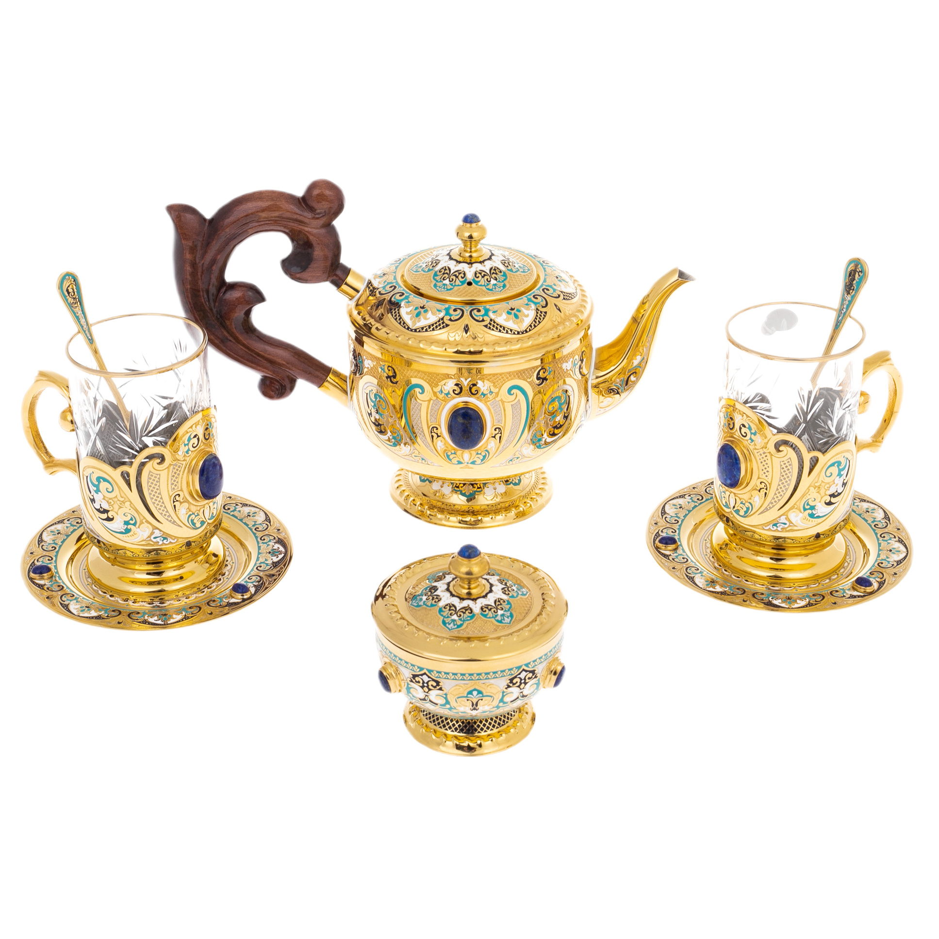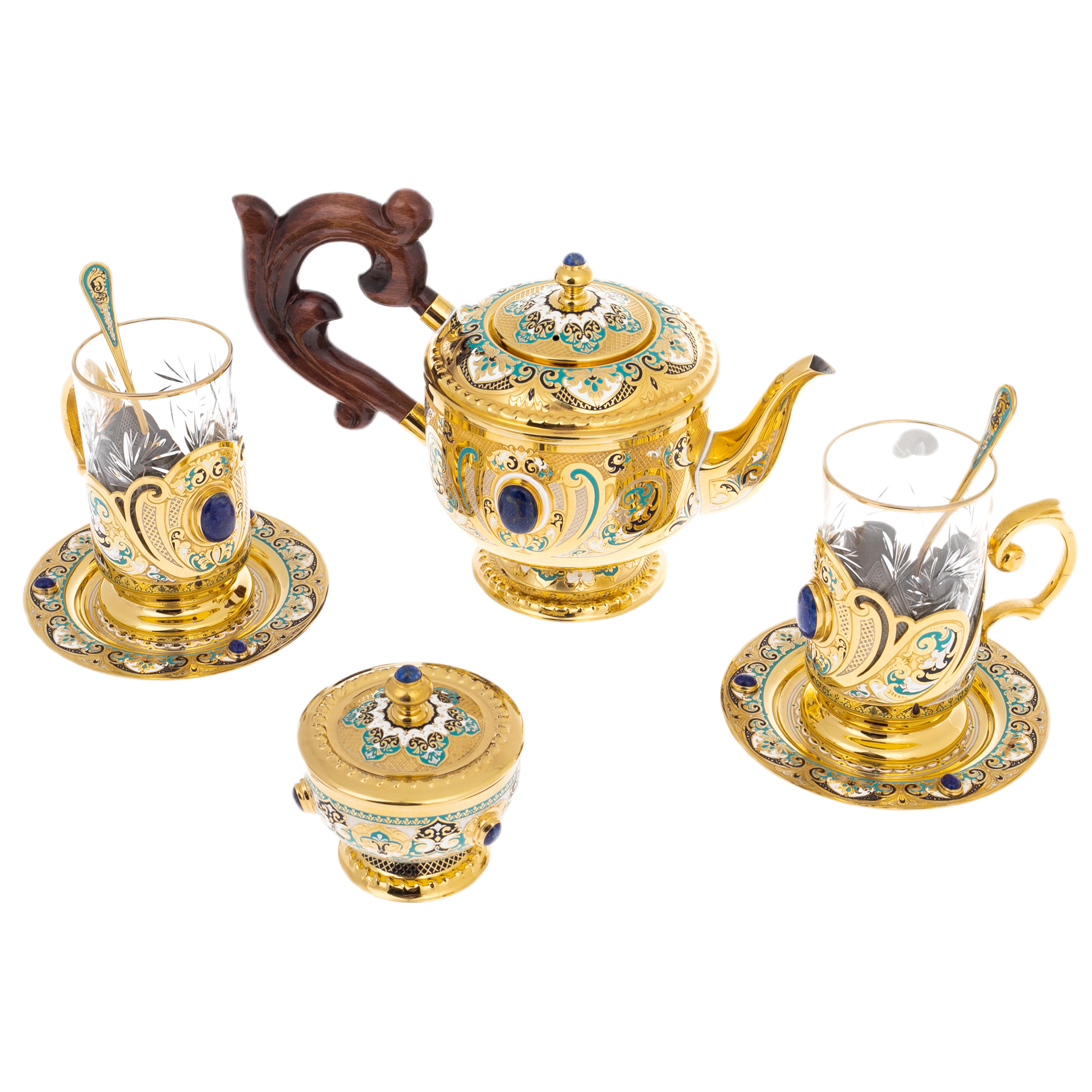 Чайный сервиз "Царевич" с лазуритом, на 2 персоны, Златоуст