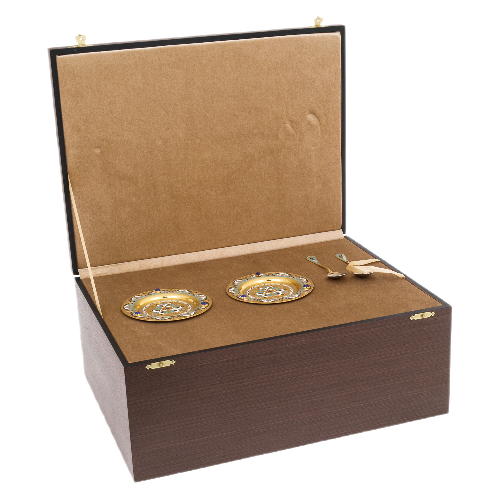 Весь набор хранится в элегантном футляре, внутренняя отделка которого напоминает королевские покои. Это не просто упаковка, а часть истории, которую вы получите в подарок, достойный места в самом изысканном интерьере.