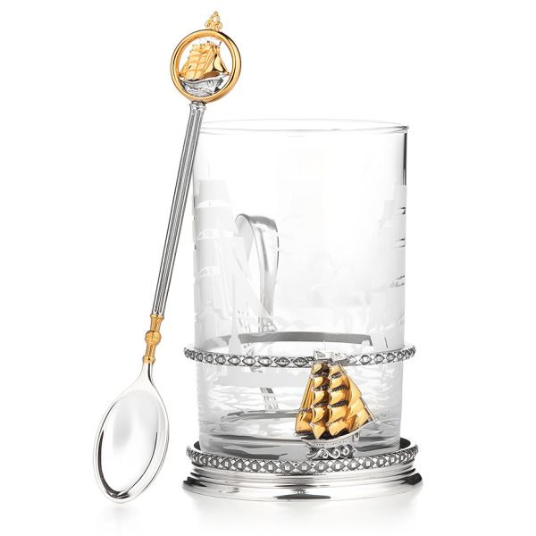 Russian silverSilver cup holder "The Old Man and the seine"Silver cup holder "The Old Man and the seine"The cup holder is part of the collection "Goldfish", based on Pushkin's fairy tale "About the fisherman and the fish". The collection reveals the main plot of the work and consists of a napkin holder, a cup holder, a teaspoon and an ionizer.