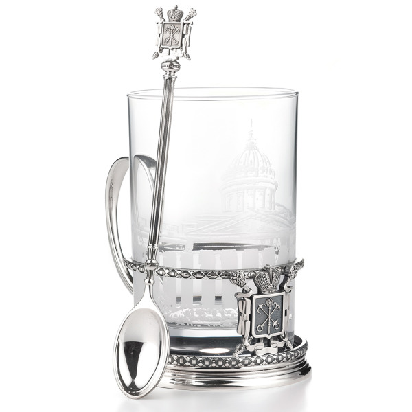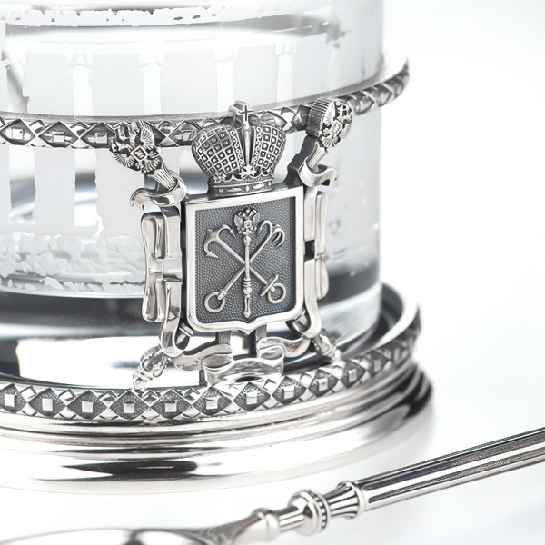 The cast, collectible cup holder is dedicated to the cultural capital of Russia, the great city of St. Petersburg. The center of the work is decorated with the coat of arms of Northern Palmyra.