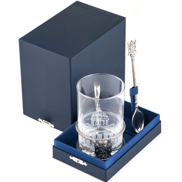The glass is hand-engraved. Branded gift case included. The cup holder can be equipped with a spoon.