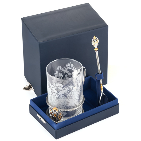 The glass is hand-engraved. Branded gift case included. The cup holder can be equipped with a spoon.