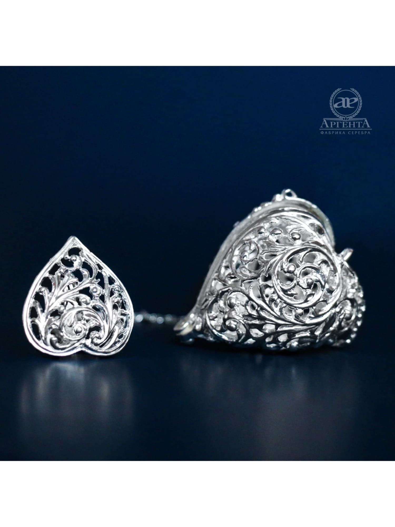 Качество продукции «Аргента» - это наша репутация, которая нарабатывалась годами. На производстве налажен многоступенчатый контроль соблюдения норм и технологий, все изделия исполнены из чистого серебра 925 пробы, а дизайн – результат эксклюзивных наработок и тонких ручных техник.