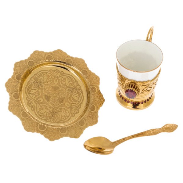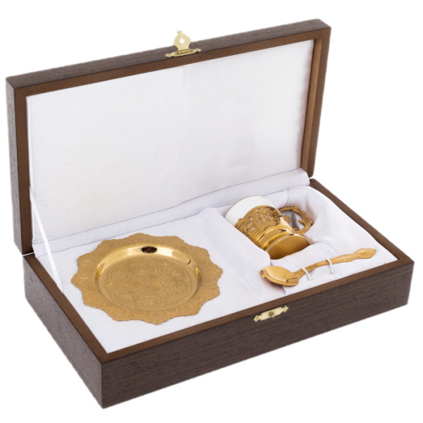Coffee couple "Gerb" for 1 person, ZlatoustCoffee couple "Gerb" for 1 person, ZlatoustThe collections of fine tableware from the masters of Zlatoust are spectacularly decorated with painting, etching and gilding. After an elegant pattern is applied to the polished surface, the product is dried in an oven and processed, after which the pattern becomes embossed.
