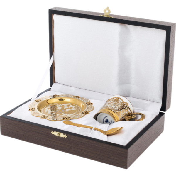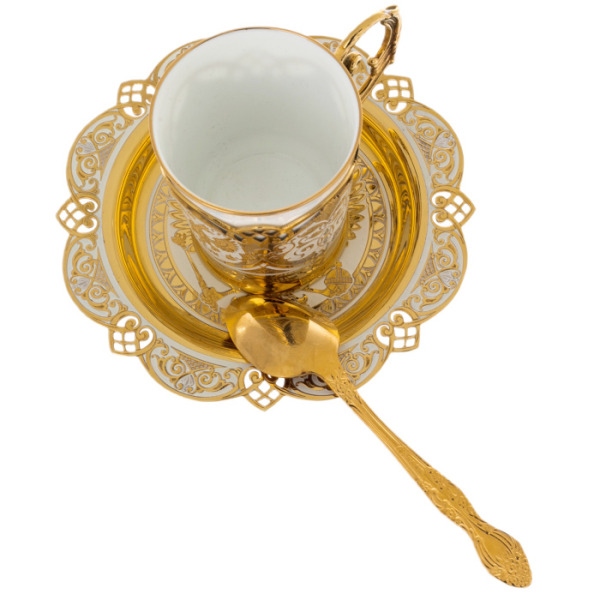 Coffee couple "Pomegranate" ZlatoustCoffee couple "Pomegranate" ZlatoustCollections of fine tableware from masters from Zlatoust are spectacularly decorated with painting, etching and gilding. After an elegant pattern is applied to the polished surface, the product is dried in an oven and processed, after which the pattern becomes embossed.